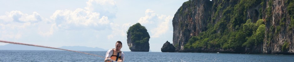 Our final day on Phi Phi was spent lounging around on the beach trying not to get sunburned but fearing there wasn’t an activity of any ‘real’ substance on the days itinerary we decided to have another go at wakeboarding having first done it in Tokyo last Summer. Like that time, I failed to get on my feet the first two attempts but then I finally got it and started to cut through the rough waves. In a way I wish I hadn’t bothered doing it as it really tires you out physically and in retrospect it made the activities that were to follow more taxing.