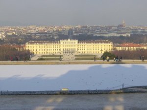 Didn’t bother with any tram or train tickets once in Vienna as I headed first for Schönbrunn Palace on the outskirts which featured in the 1987 James Bond film ‘The Living Daylights‘. My initial bad impressions (due to the seemingly ever-present scaffolding on such places) were thankfully soon to be found wide of the mark when I went round the back and saw the beautiful sunny sight of the Gloriette structure in the distance from the Palace which would provide great views across the city as well as of the Palace.