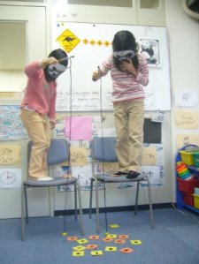 On top of that I also incorporated some of my personal items into the lesson such as any random animal photos I have (i.e. me holding a crocodile, me and Gromit the dog, swimming with fish, riding an elephant, Jaws, an Okinawan buffalo, my ‘Pringles’ duck impression and so on), my frog ‘croaking’ guiro-type thing, my Aussie magnets, coasters and cork hat.