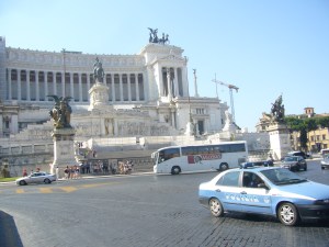 Piazza Venezia was the location for the dangerous Vespa riding scene below.
