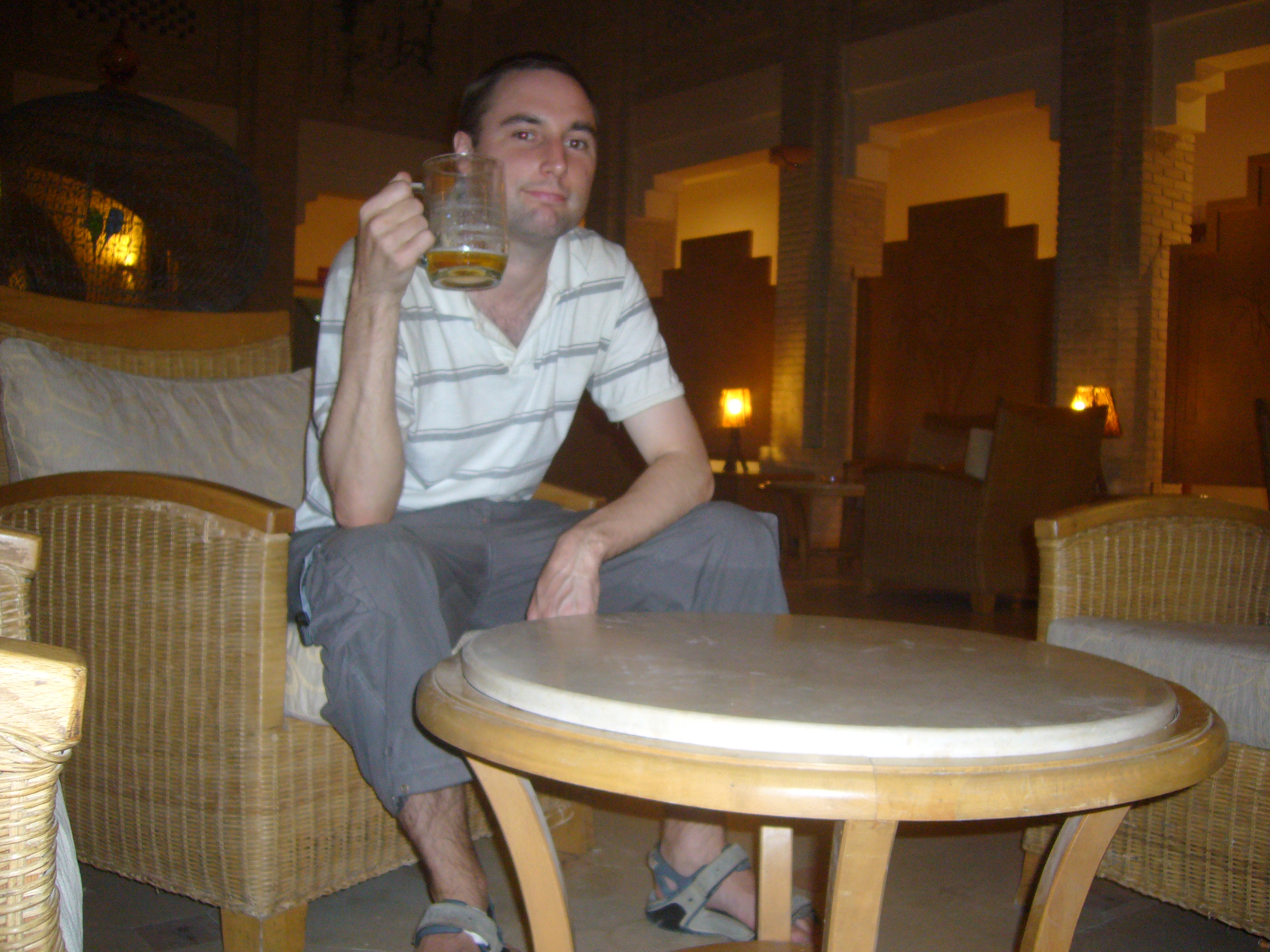 Having left Tunis at 11.40am I finally arrived in southern Tunisia after 9pm and after I’d checked into a hostel I went about looking for a beer which you wouldn’t think would be so difficult but it was as Tunisians don’t really drink beer (water, coffee and smoking through water pipes is what their bars are for) so it’s not sold hardly anywhere. Eventually I got word that it was sold at a nearby hotel.