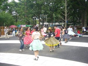 Hugo’s first few days were spent very much in Tokyo’s urban centre taking in the typical guidebook sites. I took him to the likes of Shinjuku, Harajuku and Shibuya on day one with the former including the Metroplitan government building which showed him what he had let himself in for in terms of concrete as far as the eye can see. As it was a Sunday Harajuku and Yoyogi Park were obvious choices but surprisingly there were very few cosplayers hanging out outside Harajuku station. No idea what’s happened to them but its seemingly been aan activity in decline for a while now. The ‘Elvis’ rock ‘n’ roll dancers were thankfully still in Yoyogi Park strutting their stuff in the heat as were a new collective of line dancers.