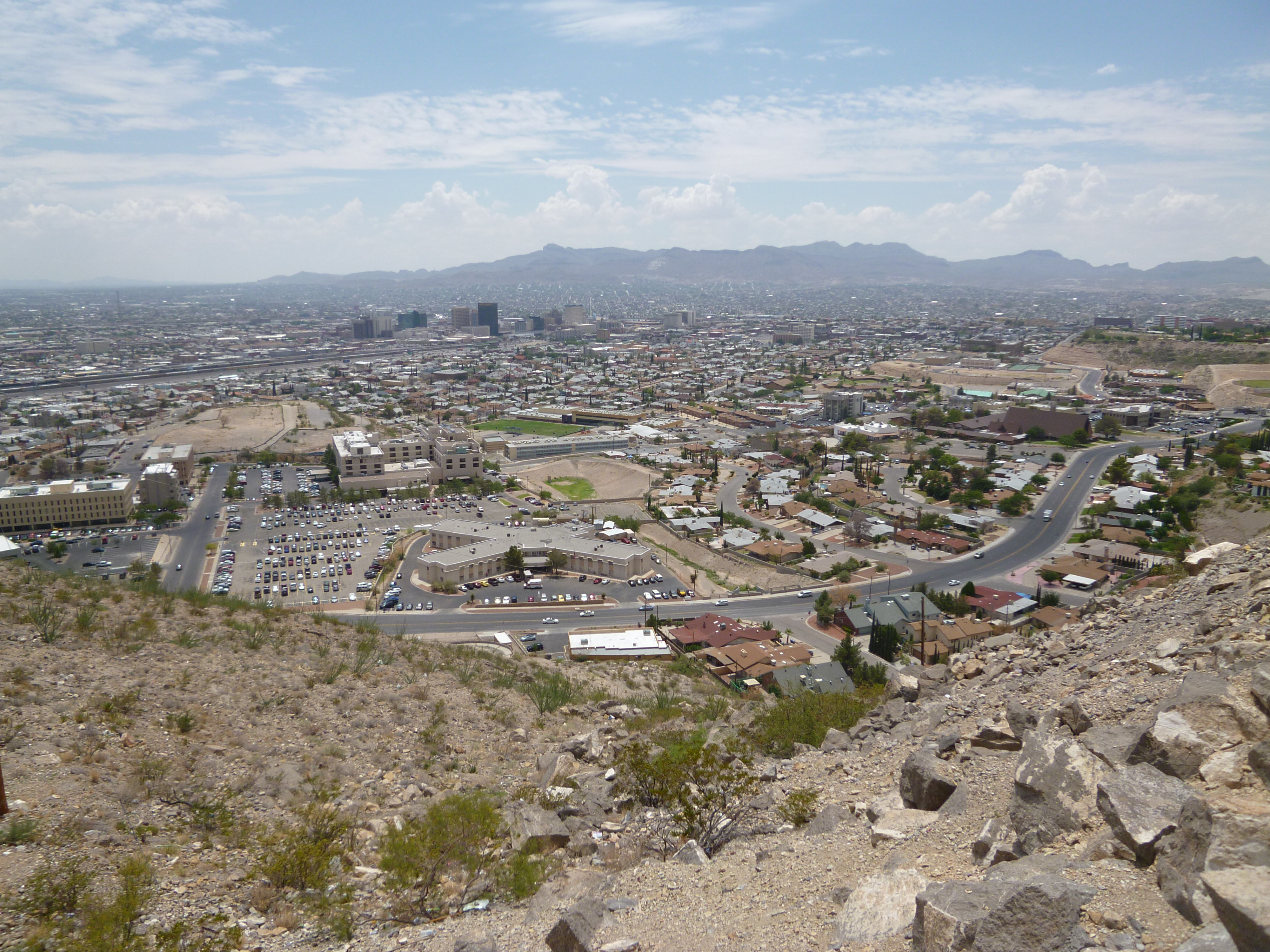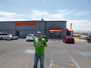 My final day in the States was a fairly relaxed one as the photo above shows! Ethan did that to me while I was passed out on the sofa. We then went to Hooters for lunch which incredibly was my first time to go to the chain famed for its large chested waitresses. The beer and food was good but the service, as it did in most places in the USA, annoyed me with the constant questions and checking-up which is all in the name of a tip. After that we drove up to a lookout point which offered views of Mexico (below) which is very close to El Paso.