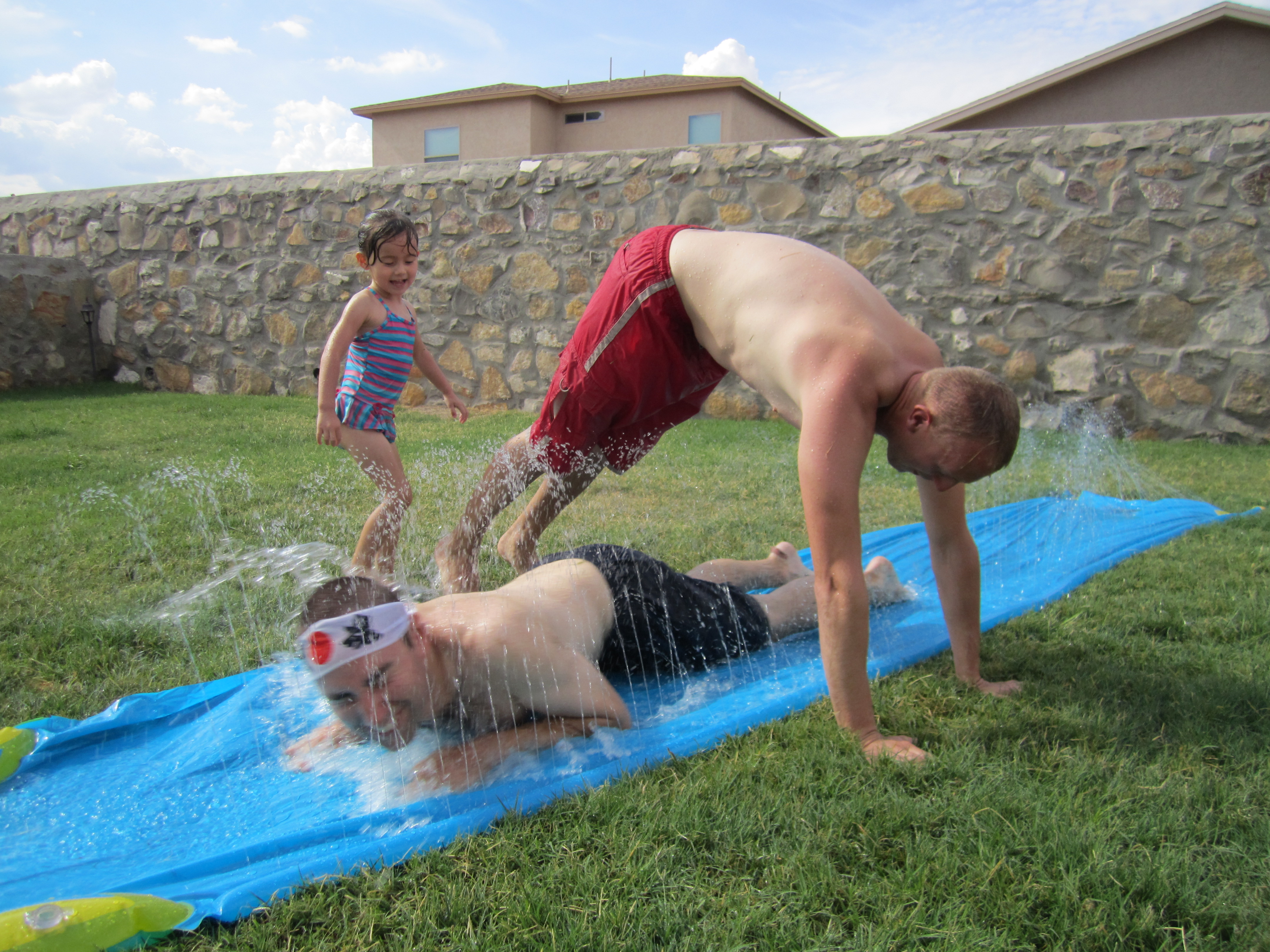 Back at the house Ethan got out the water sliding mat thing in the garden for Kaylee to play with though we ended up probably enjoying it more than her! The day before we blew bubbles in the garden which Jack (a huge dog that seemed intent on always getting in my way and given his height in proximity to me it wasn’t always such a pleasant collision!) seemed to enjoy too.