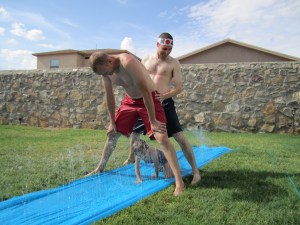 Back at Lieutenant Ethan Pointer’s house I tried on his US Army uniform which was a childhood dream realised albeit a very early one before I became a wuss and realised being a soldier was a dangerous job! Ethan and I both put on our green Chang beer t-shirts which we bought on our trip to Phuket in 2008 thinking that we would never wear them together and don’t we look ridiculous dressing the same!