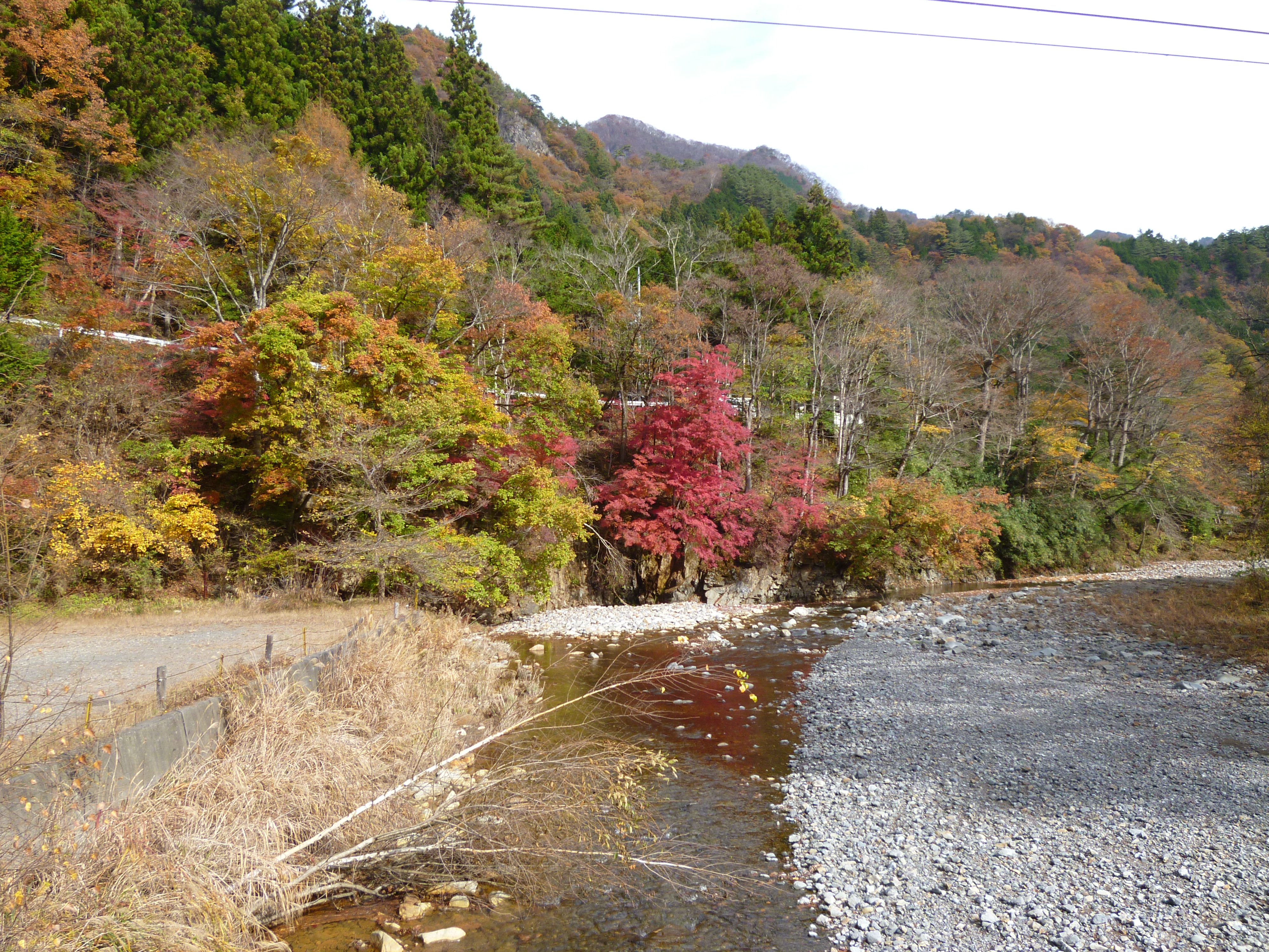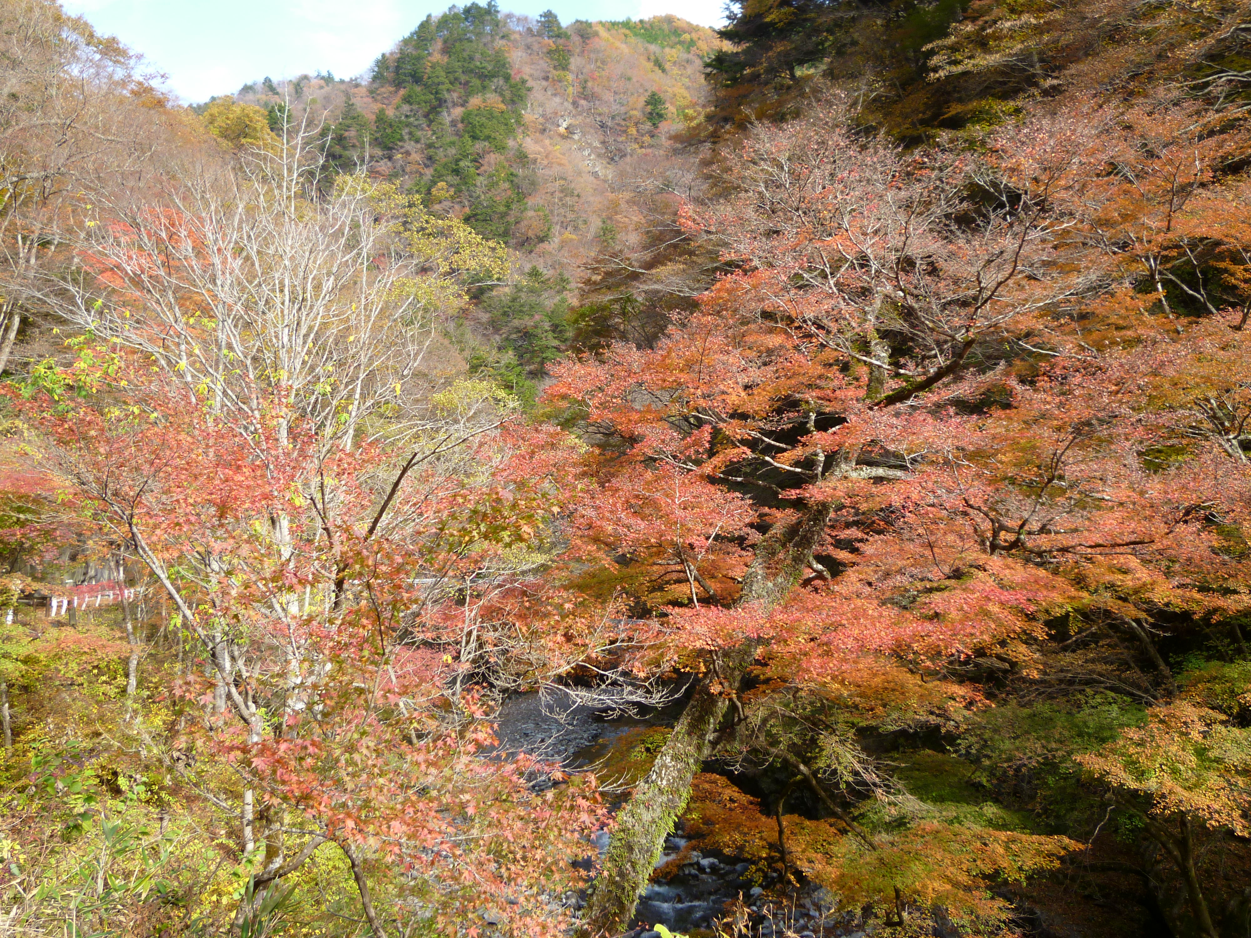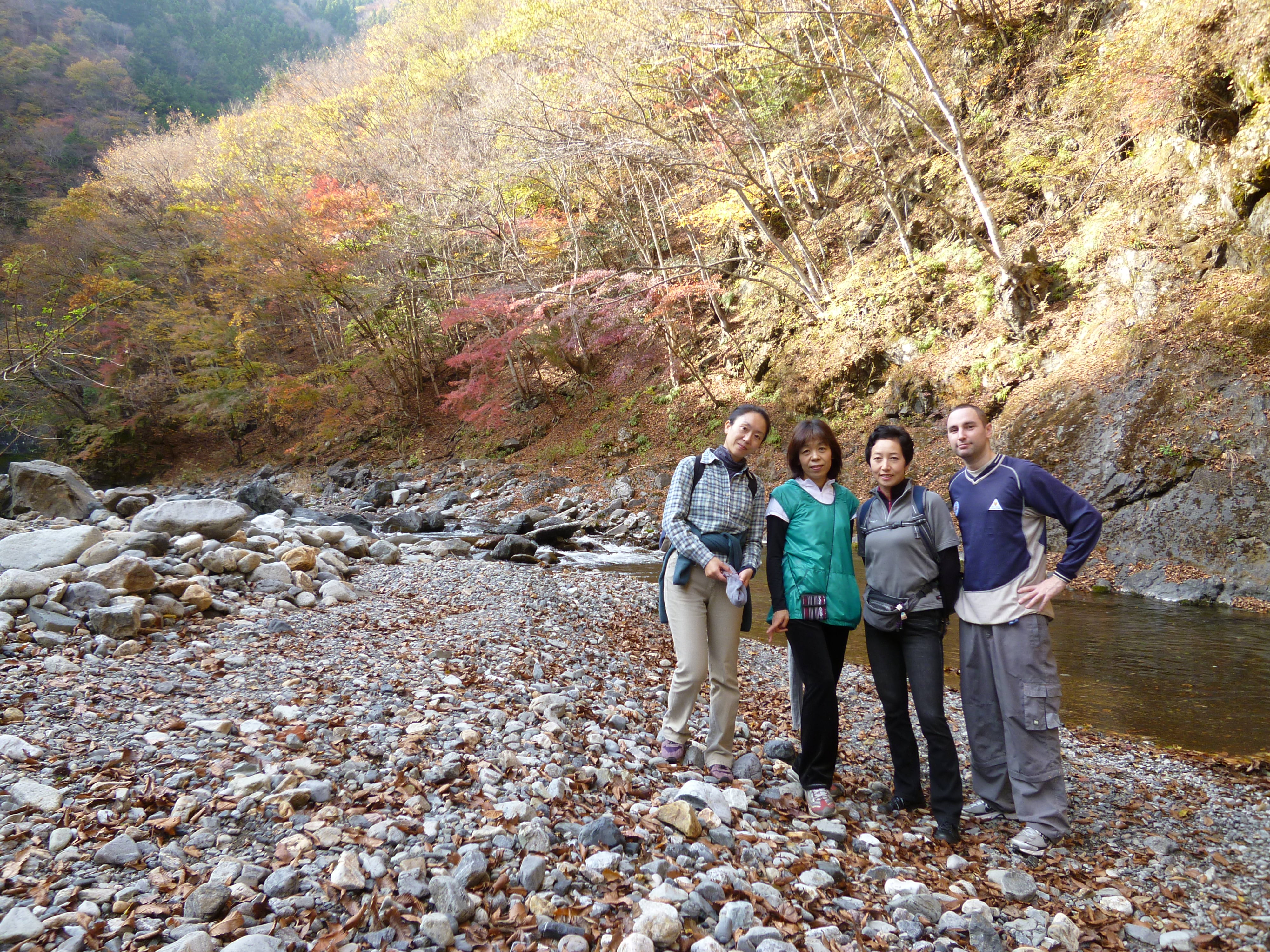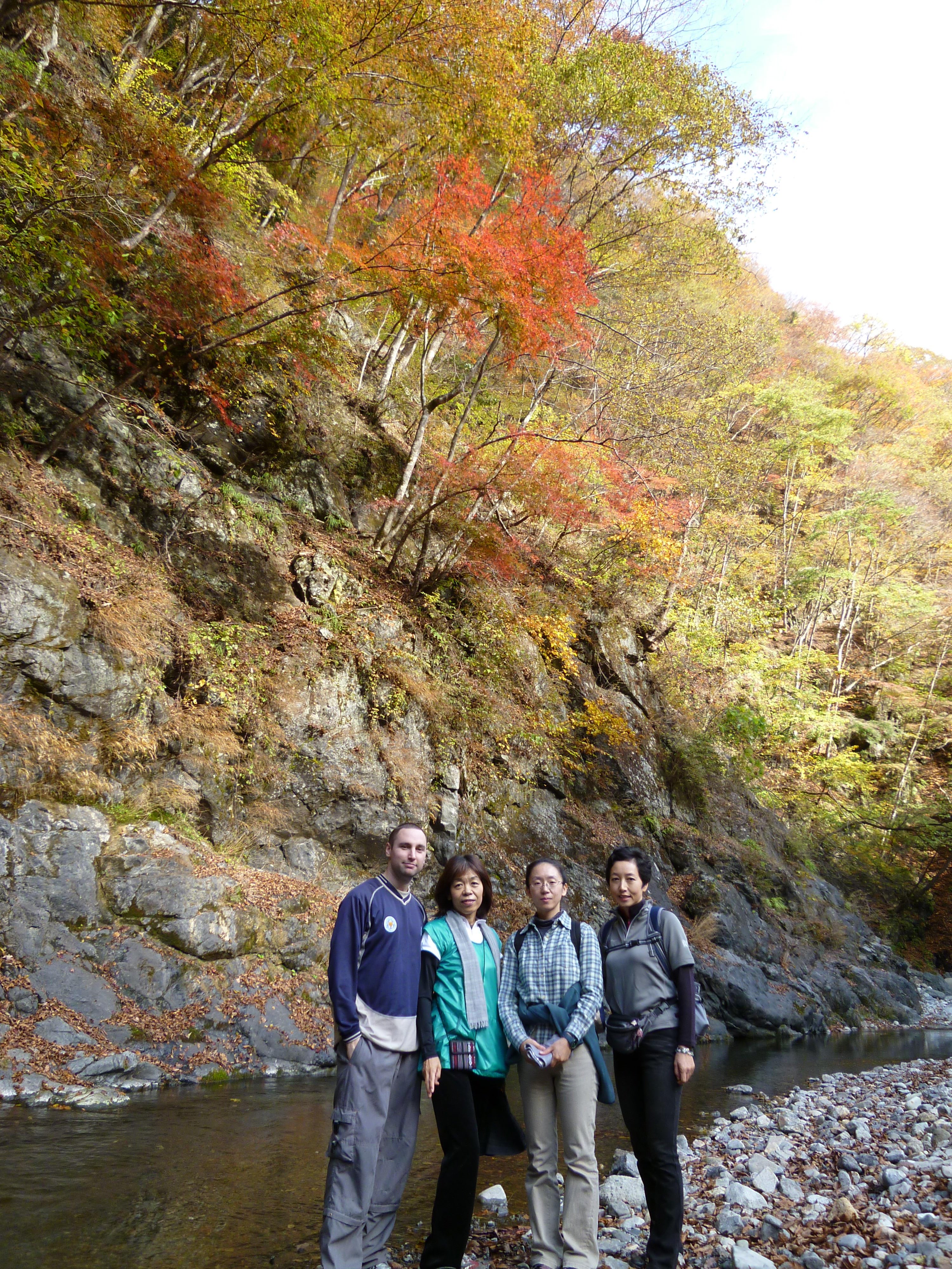 It was a very early start (I had to be at one of the ladies’ nearby house by 6.50am!) yesterday and after almost a three hour drive we set out with the idea to do a 3-4 hour hike along the Arakawa river amid the maple leaves. However, that would have meant the driver taking a bus back along the route to get her car to drive back and pick us up so as a result we ended up doing parts of it by car. This meant we could just stop at the areas where the vivid colours were the most mesmerising which was usually where there were a few old men with huge cameras and tripods. Nothing compared to the madness of Tokyo’s flame-coloured leaves sights where this ‘specimen’ all seem to gather and fill the place.