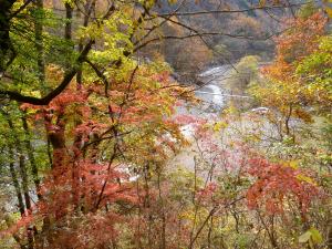It’s that time of year now when the Japanese get very excited about the brightly coloured red and yellow leaves which appear all around Japan between mid-October and mid-December depending on the part of the country. Yesterday was supposedly the best day for ‘koyo‘ in Saitama so when my Japanese teacher asked me to join her and two friends I thought I might as well. Now, I’ve never been that bothered about these leaves but fancied a day-trip and thought it would give me something to write about as, apart from a fairly vague and ever-so-slightly sexist article back in December 2006, I have never really written anything about the Autumn foliage. It has to be said that they really do highlight the beauty of all areas in much the same way that the cherry blossom does in Spring time.