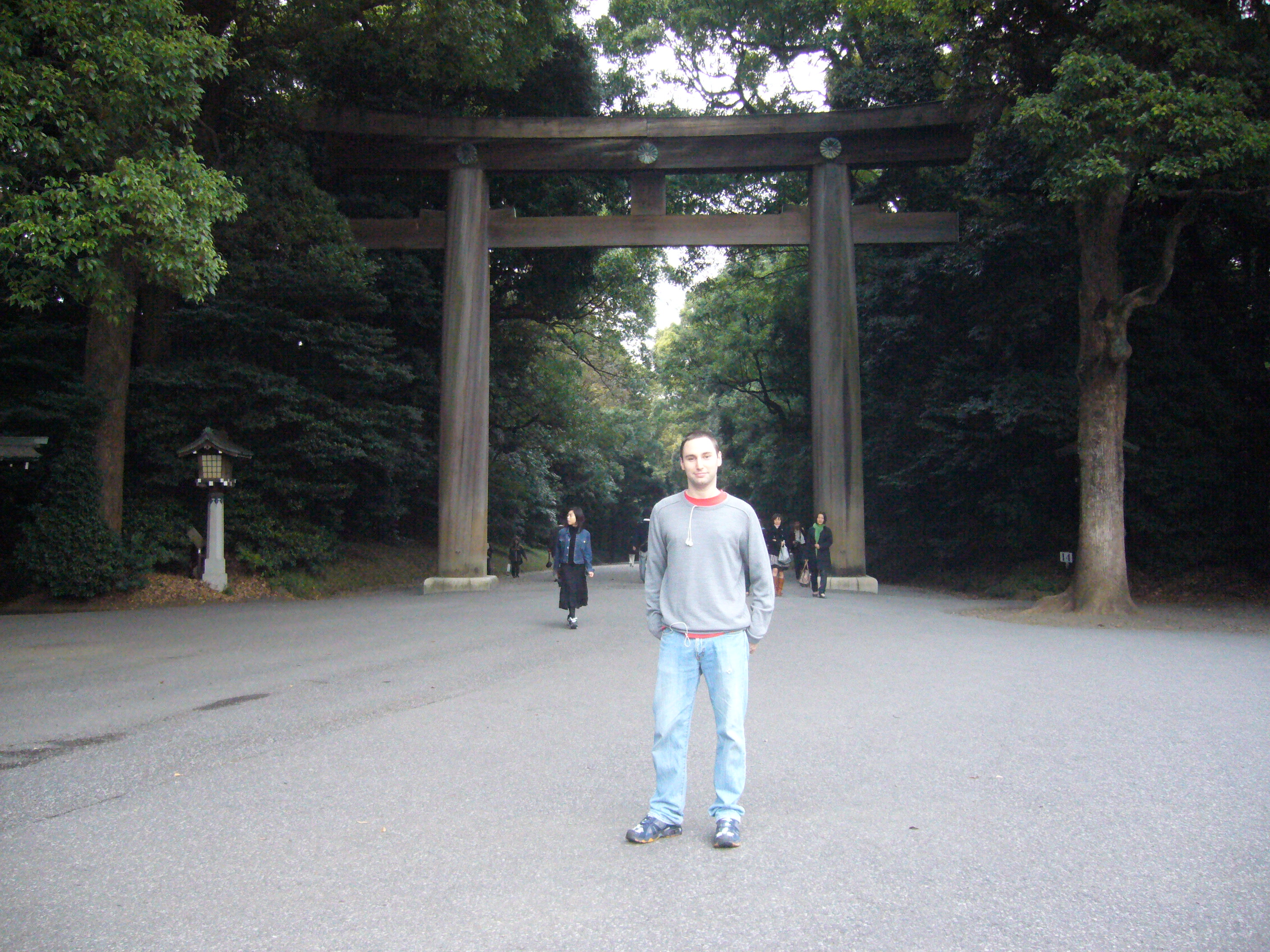 The wooden torii gate at the entrance to Meiji Shrine (below) outside Harajuku station is seen on 37 mins even though the caption prior to it says that its Shinjuku-gyoen Gardens. Even though its supposed to be January the two American girls are wearing just vests as they walk along the path in fear of the monster whilst Japanese people in the background are just going about their own business oblivious to the fact that theres a monster on the loose. Truly an awful film and I’m mildly embarrassed to have even featured these locations on here. Almost worth watching though to see how bad it is!