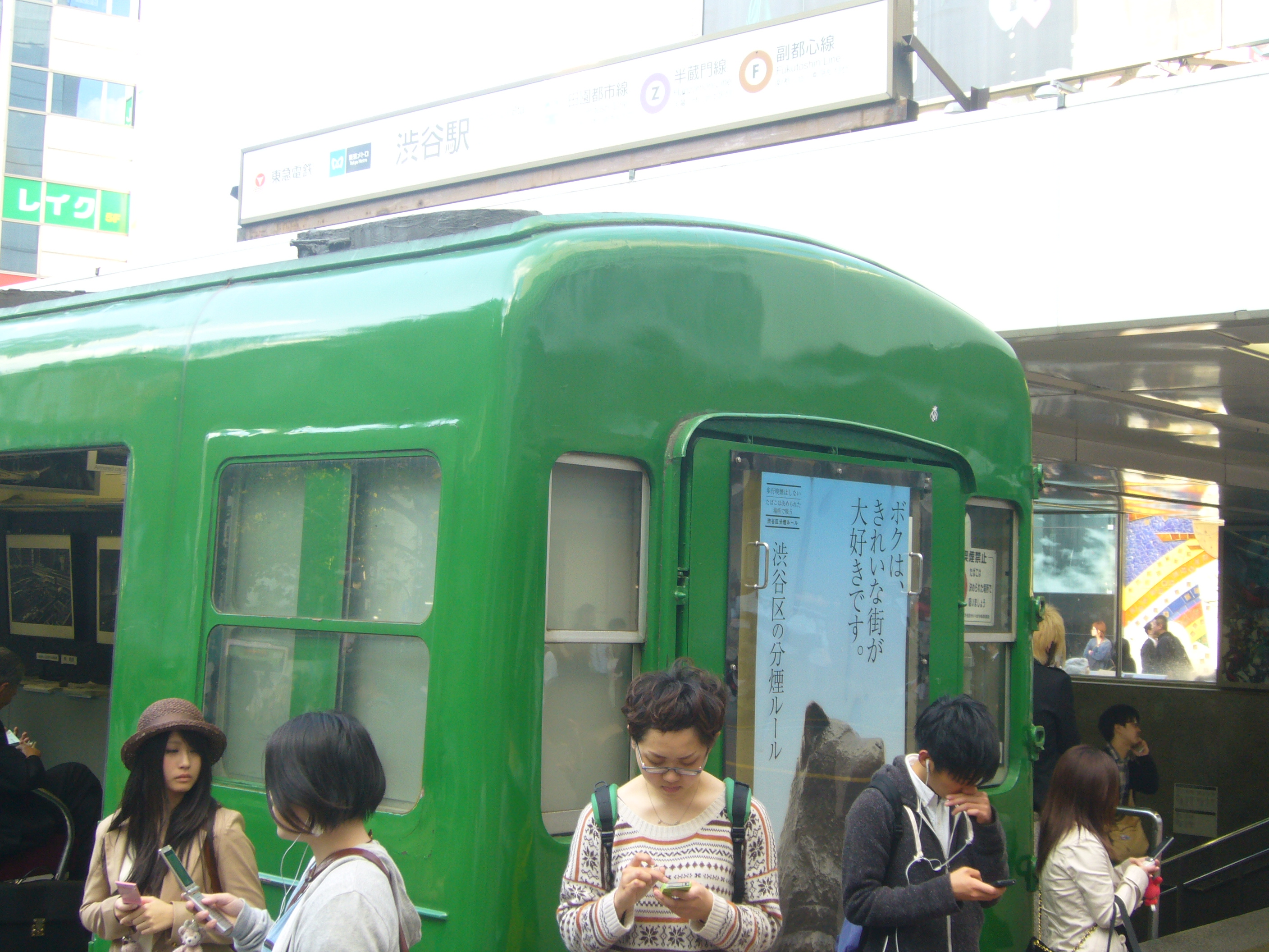 Every three minutes this world famous crossing descends into chaos as hundreds and hundreds of people cross in all directions and has been seen in a countless number of films. This one is no exception as the shot above is seen. The green train below and the famous Hachiko dog statue are within spitting distance of each other outside Shibuya station and both these angled shots can be seen in the blink of an eye.