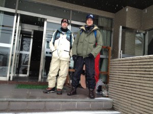 We were on the slopes at Happo-One (my first time on this mountain) in lovely sunny conditions between 9am and 4.30pm on day one and have the strange red burn marks on our faces to show for it! Other than a couple of ever-so-painful buttock splitting falls on my ar*e and a bit of cramp the day passed off without too many accidents.