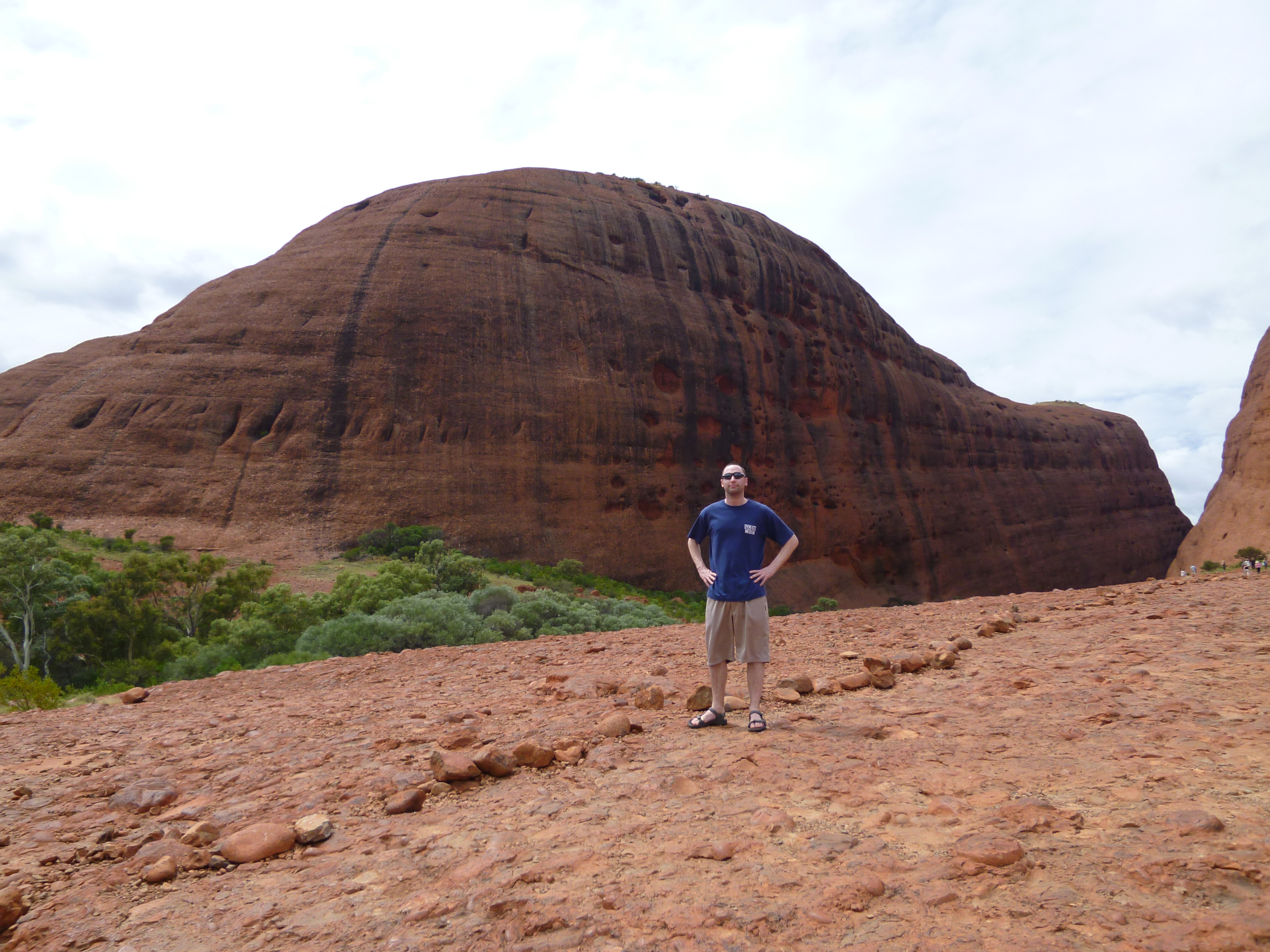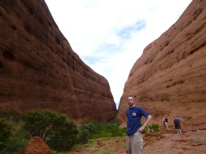 My bus departed Alice at 6am and the first stop was for a quick photo opportunity of Mount Conner which from afar could easily be mistaken (as it is indeed by many) as Uluru itself. Kata Tjuta (below) was on the agenda after that and this really was an amazing sight, one which at the time felt more impressive than my pre-conceived impressions of its much more famous red brother. Everyone has seen pictures of Uluru but far less know about Kata Tjuta (or the Olgas as they’re more commonly known as) and its large domed rock formations which I considered to be really impressive.