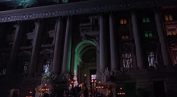 All of Gotham society including Wayne and Chase turn up at The Ritz Gotham Hotel on 70 minutes where Edward Nygma (Jim Carrey) has his party is also in Lower Manhattan and is in fact the old US Customs House on 1 Bowling Green at Broadway. It is now the National Museum of the American Indian (below) and also featured in ‘Ghostbusters II‘.