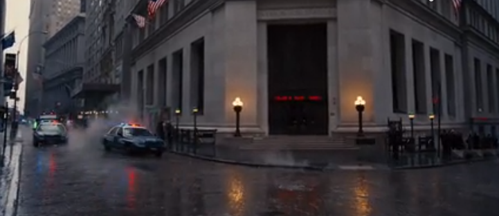 The exterior of Gotham City Stock Exchange (41 minutes) is on Wall Street and its the JPMorgan Building at number 23 (below) on the corner of Broad Street which is used though sadly it was under construction when I was in town which can be one of the most frustrating things on such location hunting expeditions. For the record, it’s interior was filmed all the way over in Los Angeles.
