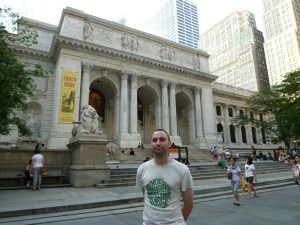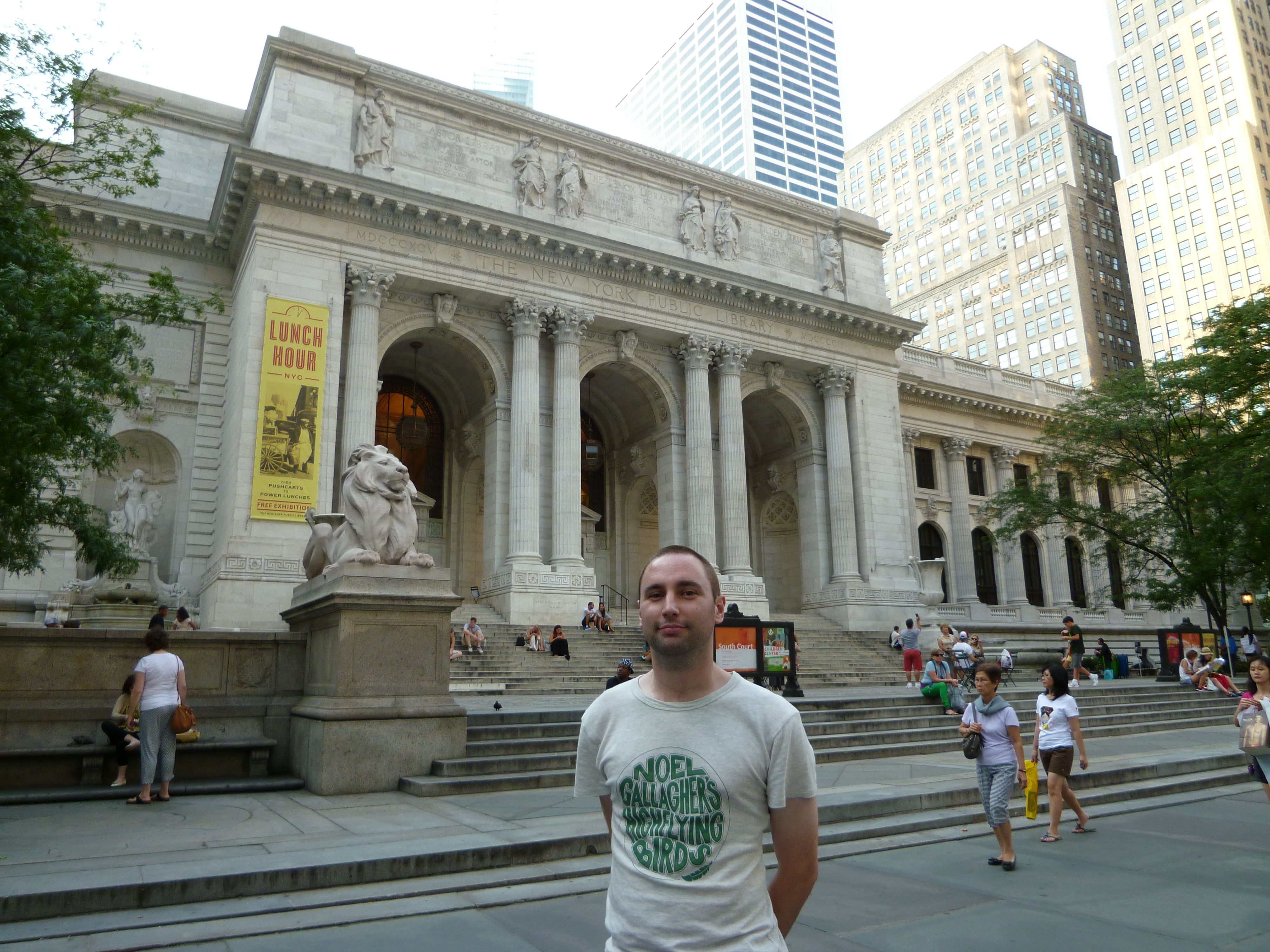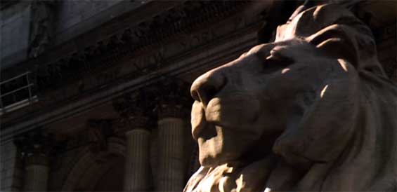 The pre-title credits begin with a shot of the marble lion outside the New York Public Library (below) at 455 5th Avenue where the first super-natural experience takes place before Ray Parker Junior’s famous title song (which I did as a gap-fill activity in Halloweeen lessons a couple of years back) kicks in.