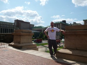 Columbia University (below) on 2960 Broadway is first seen during the opening credits but its first proper appearance is after 14 minutes when Peter Venkman (Bill Murray) explains to Raymond Stantz (Dan Aykroyd) on the steps of the Low Memorial Library that it was their destiny to get “thrown out of this dump” so they can go into business themselves.