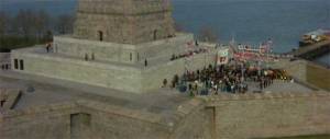 The movie ends with an event to say ‘Thank-you Ghostbusters’ which is held right next to the Statue of Liberty (below) on Liberty Island where the Mayor and the people of New York give the paranormal exterminators the key to the city as a plan is made to restore the famous statue after it was used (and no doubt damaged) to break through something or another towards the films end.