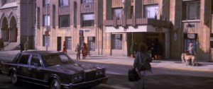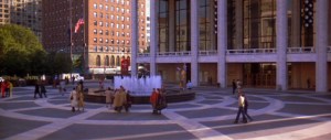 Dana Barrett (Sigourney Weaver) and Venkman meet by chance on 42 mins at the Lincoln Centre (below) where they dicuss the information he’s found on her apartment and why it may be haunted. This place also appeared in the award winning 2010 film ‘Black Swan‘ and is located on Columbus Avenue between West 63rd and 64th Streets.