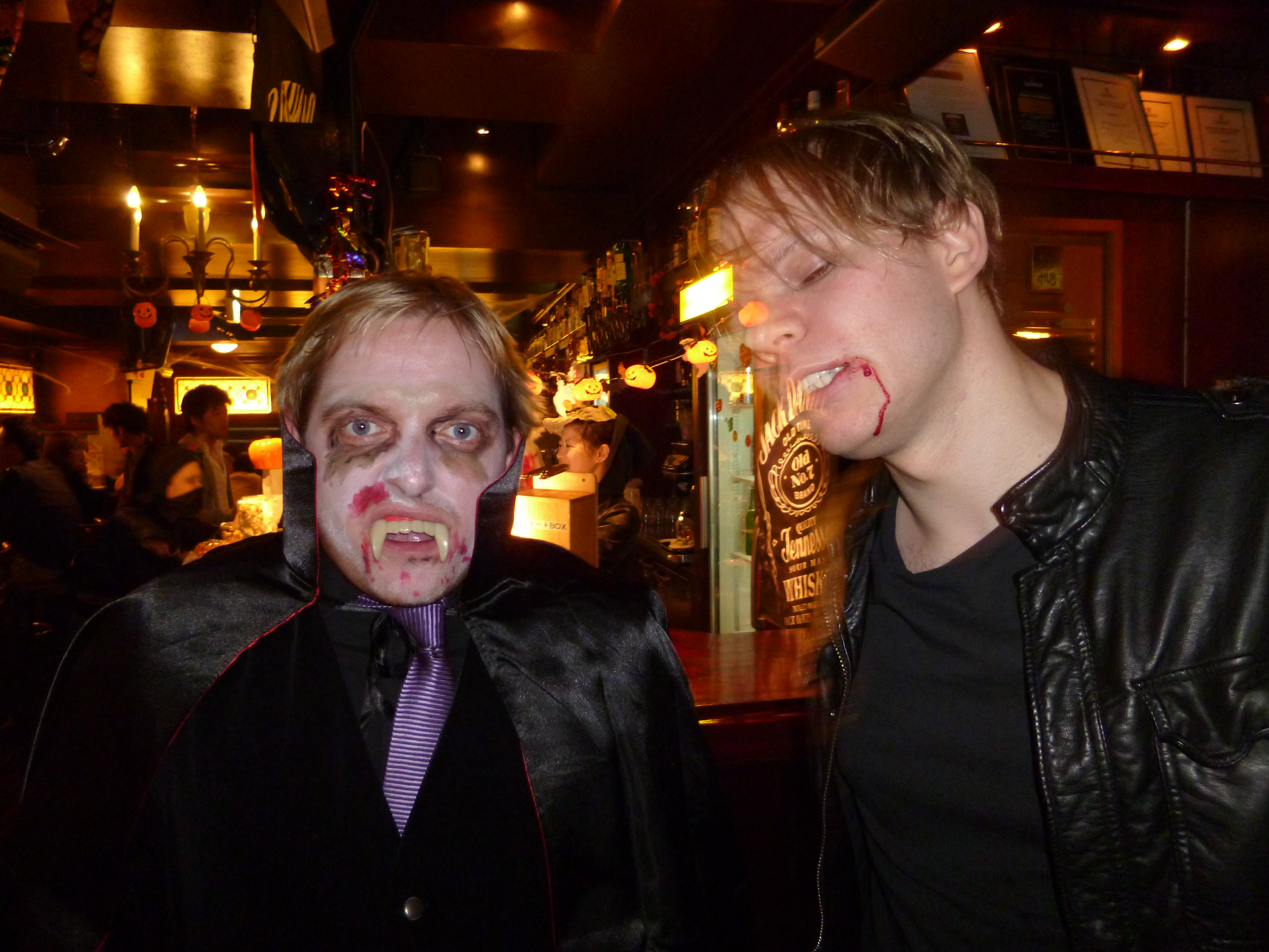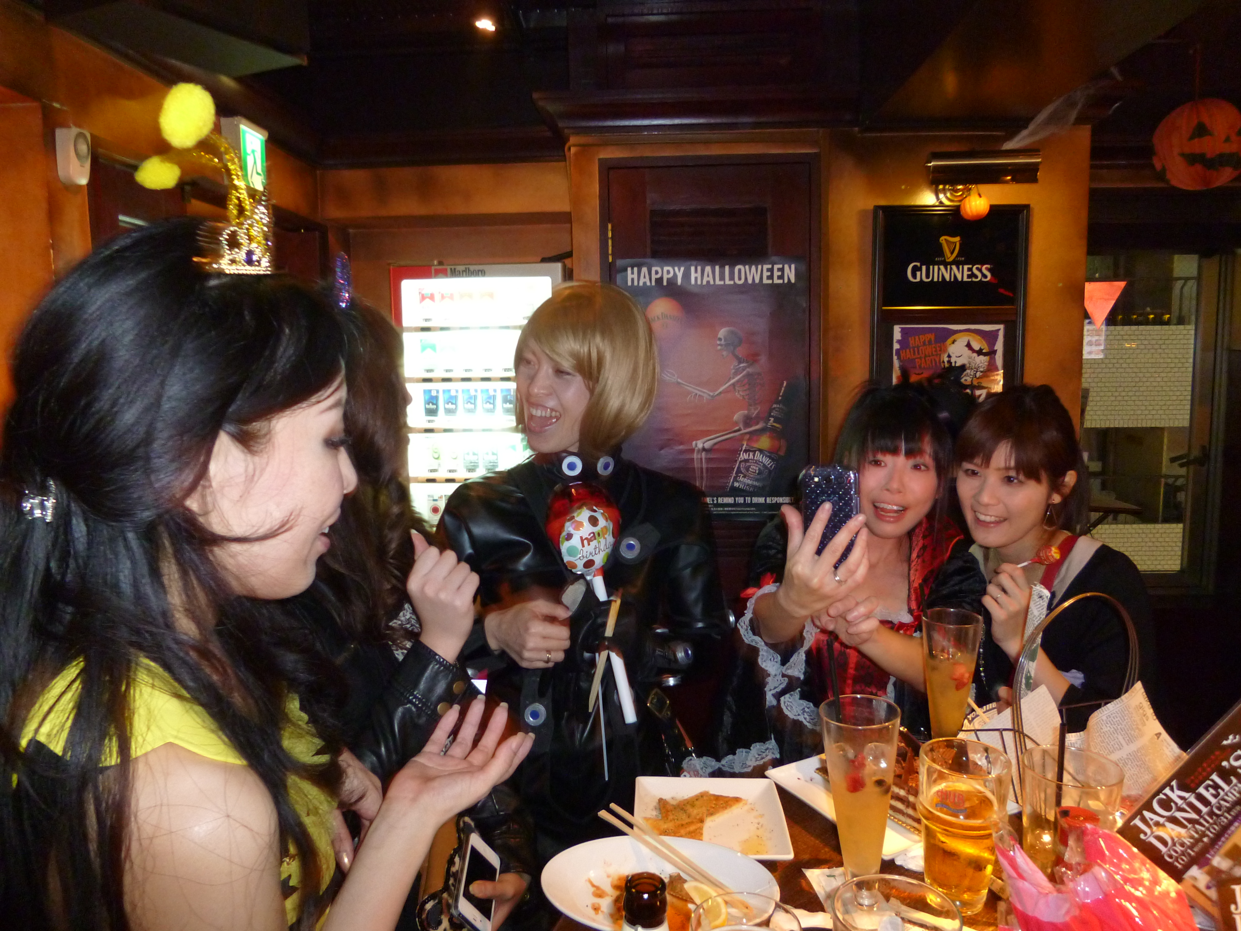 On the other hand the fun was taken out of the night slightly by some of the impracticalities involved in drinking with a mask on (I tried through a straw for a bit but it didn’t taste good), needing to go to the toilet, having pockets full of cameras, phones and whatever else. Furthermore, it was very hot in my costume and I sweated a lot in the jacket and mask but I saw that as a good thing in my attempt to lose a few kilos. I only had a few beers during my stay as I had to get up the following morning to do a couple of kids Halloween parties in Hibarigaoka which you can read about here.