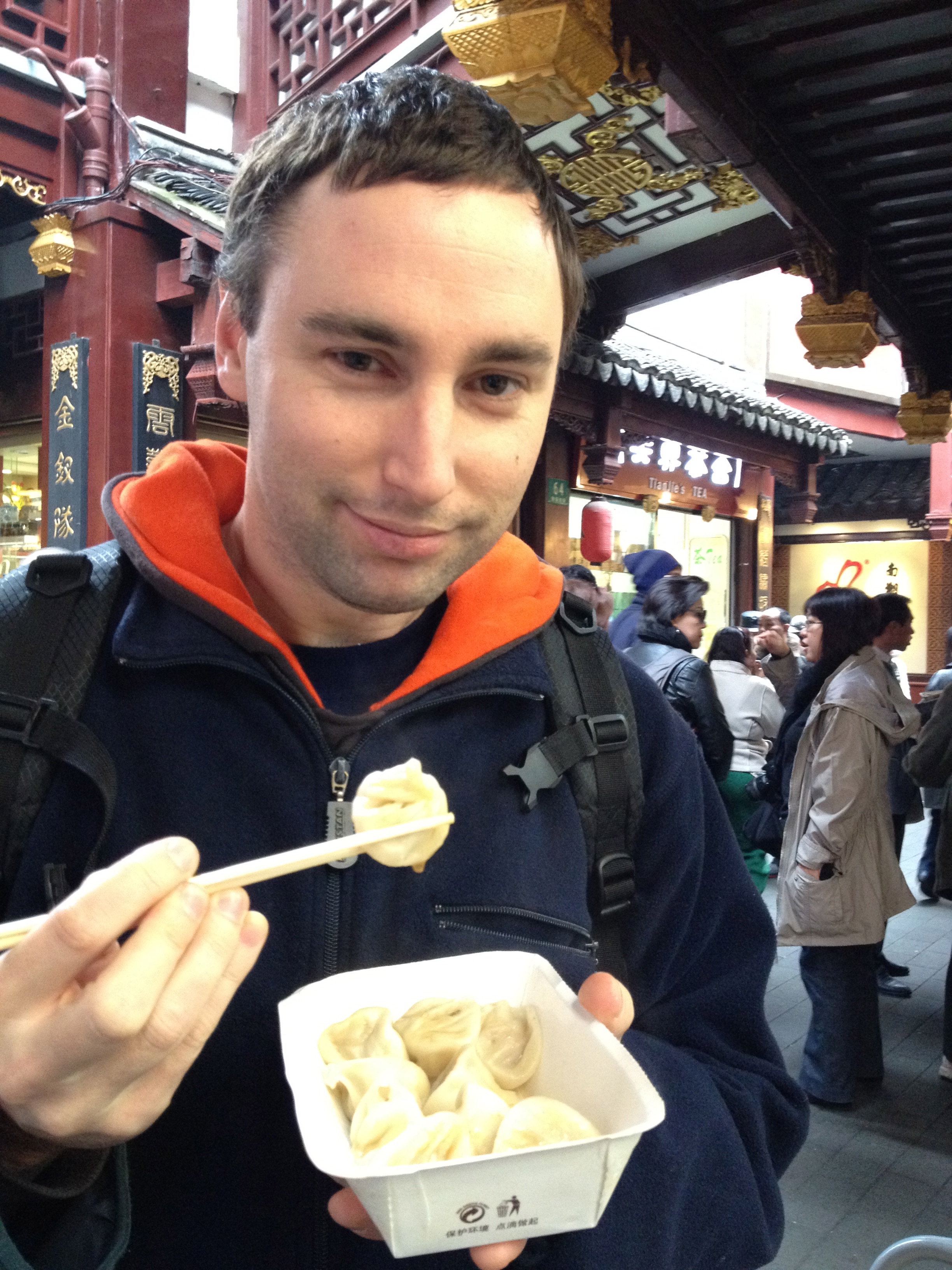 This Shanghai institution was actually found by accident having given up on finding it only 30 minutes prior to locating it. Having just had lunch at a very, very local place on a back lane nearby where a funny but pushy lady persuaded us to sit down and eat even though neither of us could communicate with the other at all! We had some pork, tea eggs (eggs soaked in soy sauce) and noodles at a dirt cheap price and glad of the experience I was!