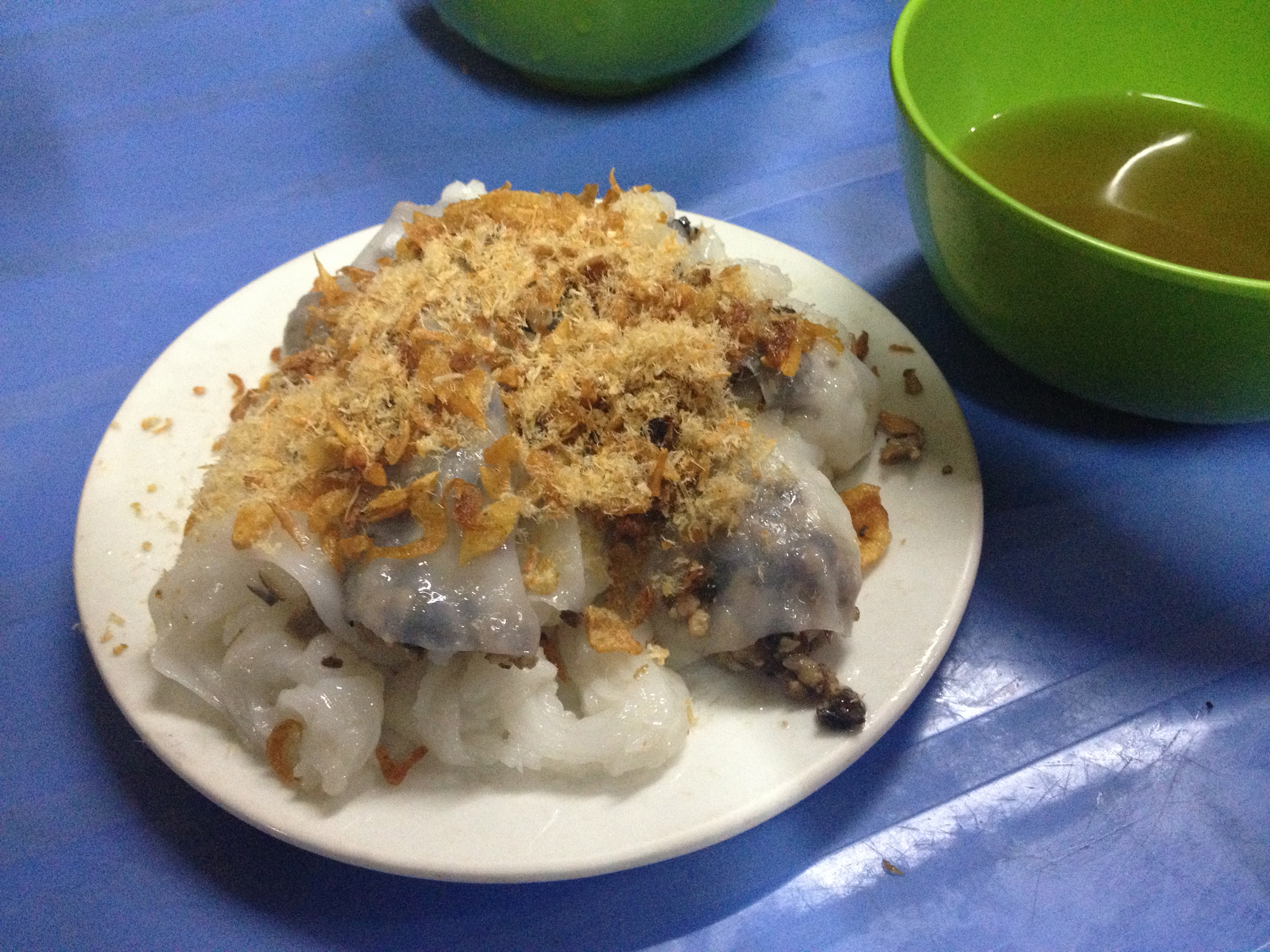Whilst Hanoi does have a fair few interesting sights grouped quite close together they are not the memories that most people leave with as it is the aforementioned street noise and ubiquitous food stalls which provide the highlight for many. Pho (noodle soup) is naturally the most common dish and we didn’t waste too much time in eating that on arrival at ‘Rising Dragon Grand Hotel’ on Hang Ga. After some pho and spring rolls on a noisy street we then sampled the dish you see below of which the name sadly eludes me at this moment.