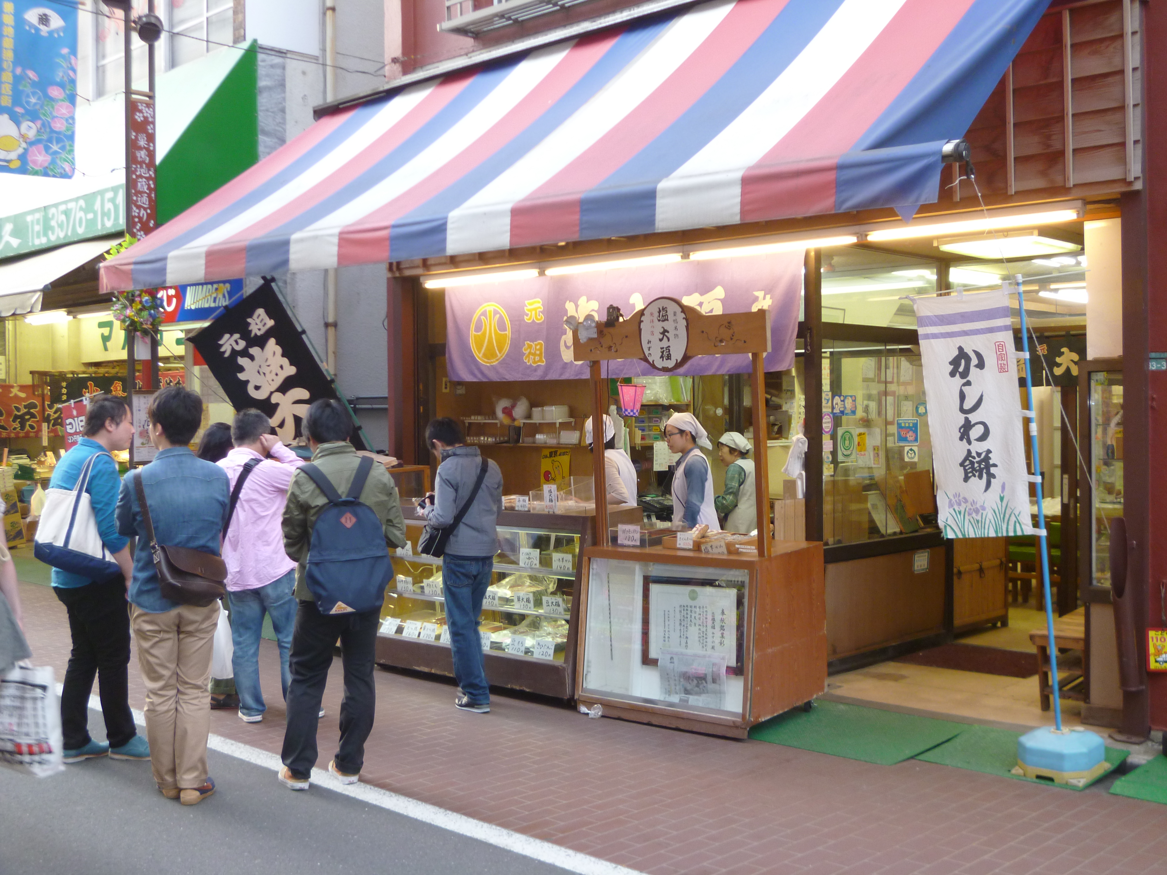 About halfway down the shopping street is Koganji Temple; home to the Togenuki Jizo statue, which is often incredibly popular with queues of people waiting to wash the statue in hope of relief of their ailments. They use small hand towels which they then place on their own body in hope of relief.