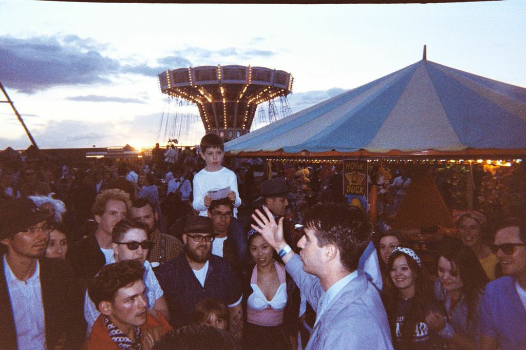 The line to enter the “secret location” at Queen Elizabeth Olympic Park in East London stretched for miles and took us an hour or so till we entered via a bag search. This is a rare event in that mobile phones are confiscated from those who decide to bring them each night. It’s supposed to be some response to digital culture and of the course the organisers can use the excuse that mobiles didn’t exist in 1955 so allowing them would take away from the grandness of the event. What we didn’t realise though was that we could purchase disposable camera’s on sight (£6) which naturally we did and thereafter our attitude changed a little bit as it became just about taking pictures rather than enjoying it in the way that people used to do in days gone by!