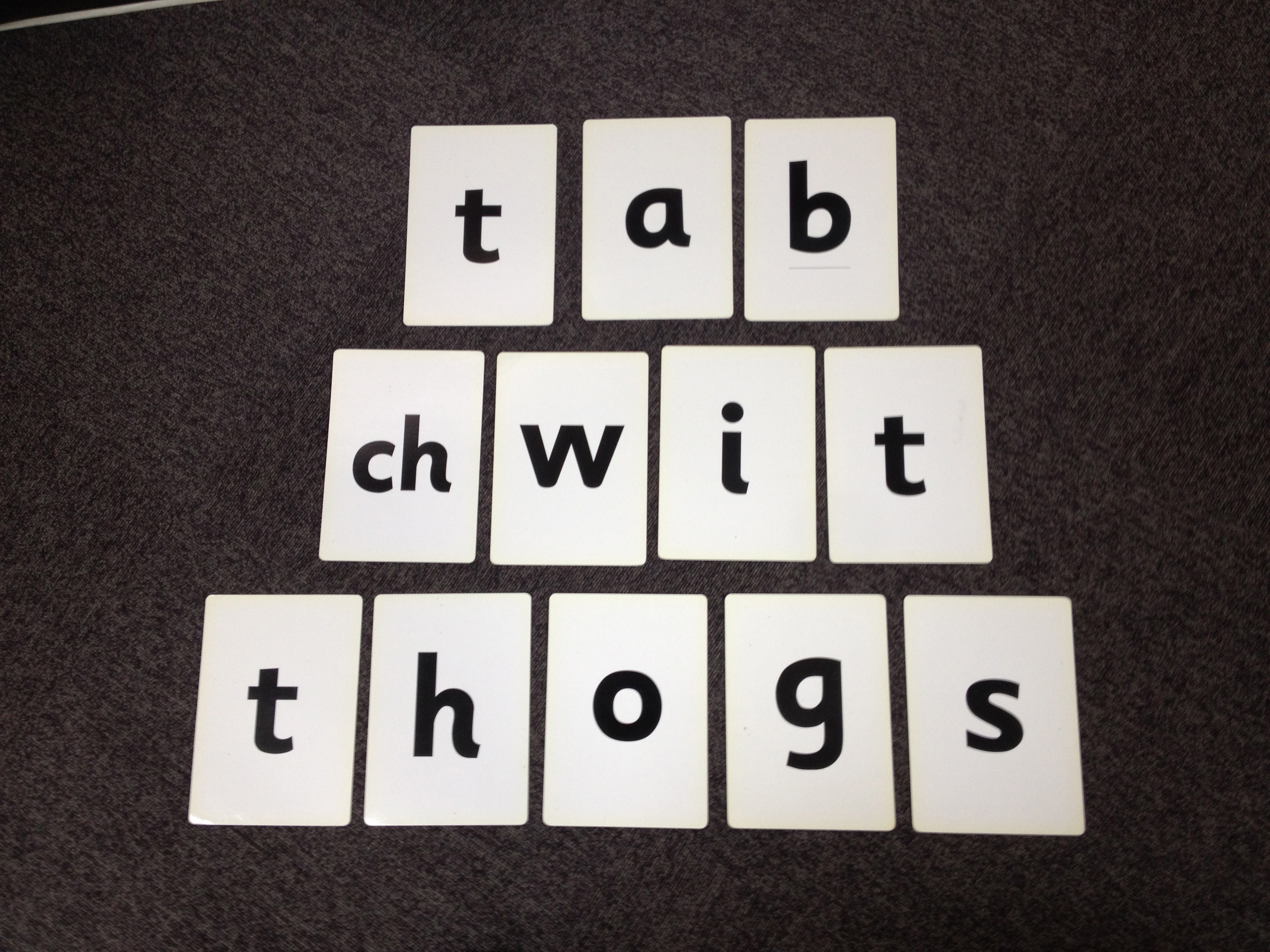 2. Three-Letter Conundrum – Take the flashcard letters A, B, T and get the students to re-arrange them to make the Halloween word! This activity practices (or reinforces) phonics and you could even pad out the activity beforehand by firstly eliciting each letter and any words (whether Halloween-related or otherwise!) beginning with that letter. Of course, more letters could be jumbled up and rearranged to form longer Halloween-related words. Alphamats or magnetic letters can of course be used instead of flashcards.