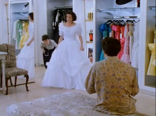 Carrie (Andie MacDowell) gives Charles a show of her potential wedding dresses on 58 minutes at 1 Sloane Square (below) which used to be Albrissi, an interior design service.