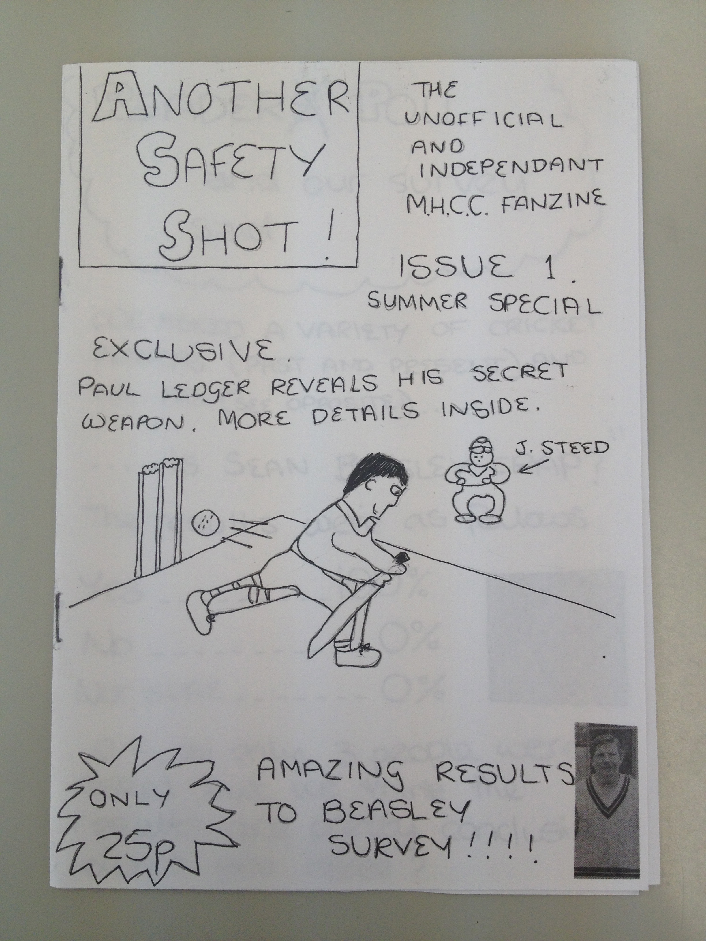When I discovered these fanzines a few months ago at my parents place I was delighted as I had pretty much forgotten about them. They were very much modelled on ideas copied from long-running Leicester City fanzine ‘The Fox‘ and ‘Match‘ football weekly. We set about compiling these fanzines which were always destined to be a one-issue-only special yet amazingly the cricket one stretched for another year as there were more people to take the p*ss out of and we had features which could be expanded.