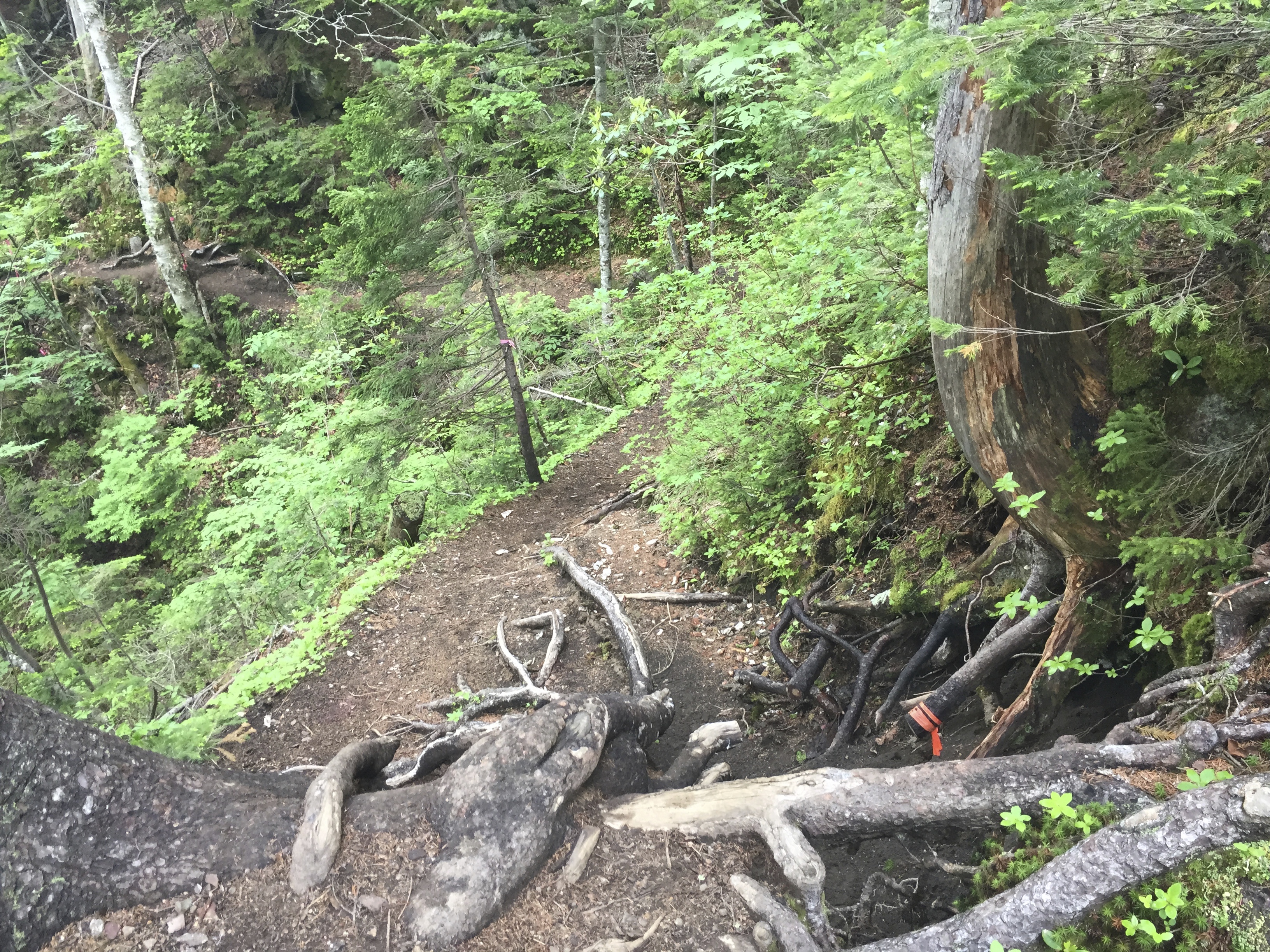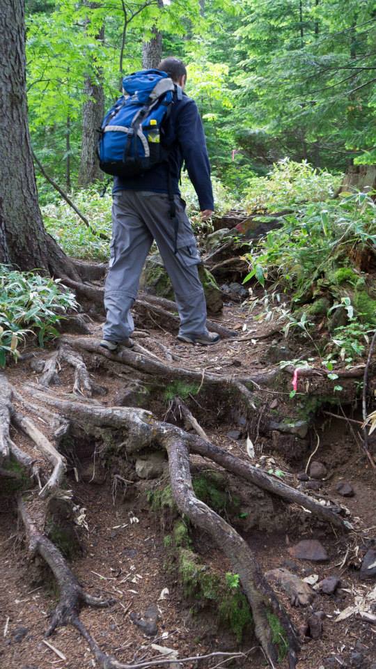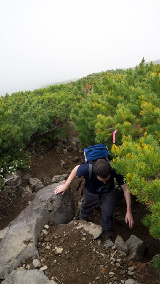 The trail end was a forest of Hokkaido red spruce and, though easy to traverse, this seemed to be taking us on a long winded hike when we just wanted to travel how the crow flies.