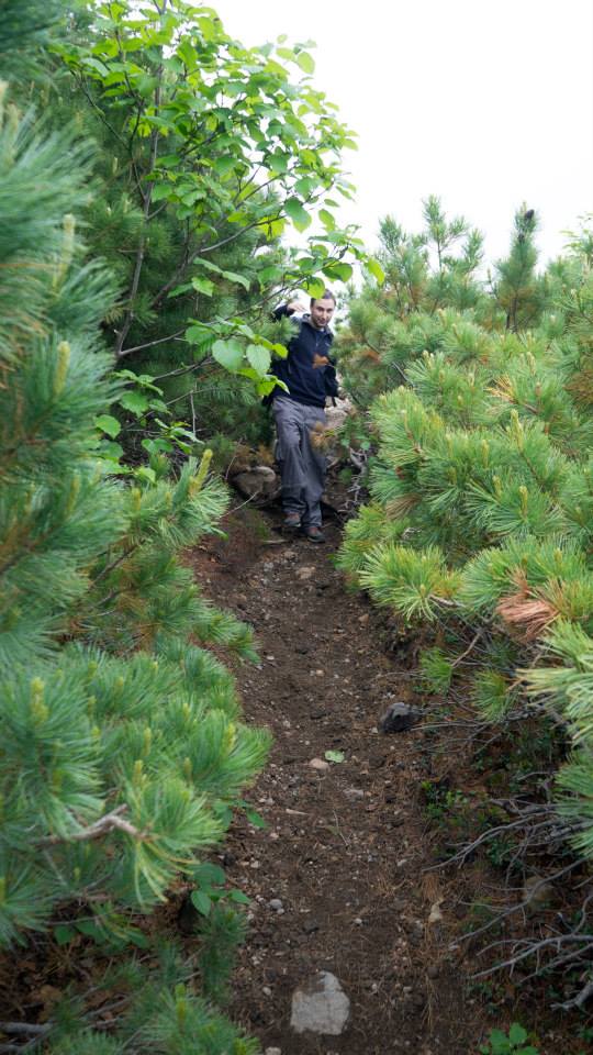 The trail descended the volcano’s slope through dwarf pine and we made good progress as were keen to finish as quickly as we could.
