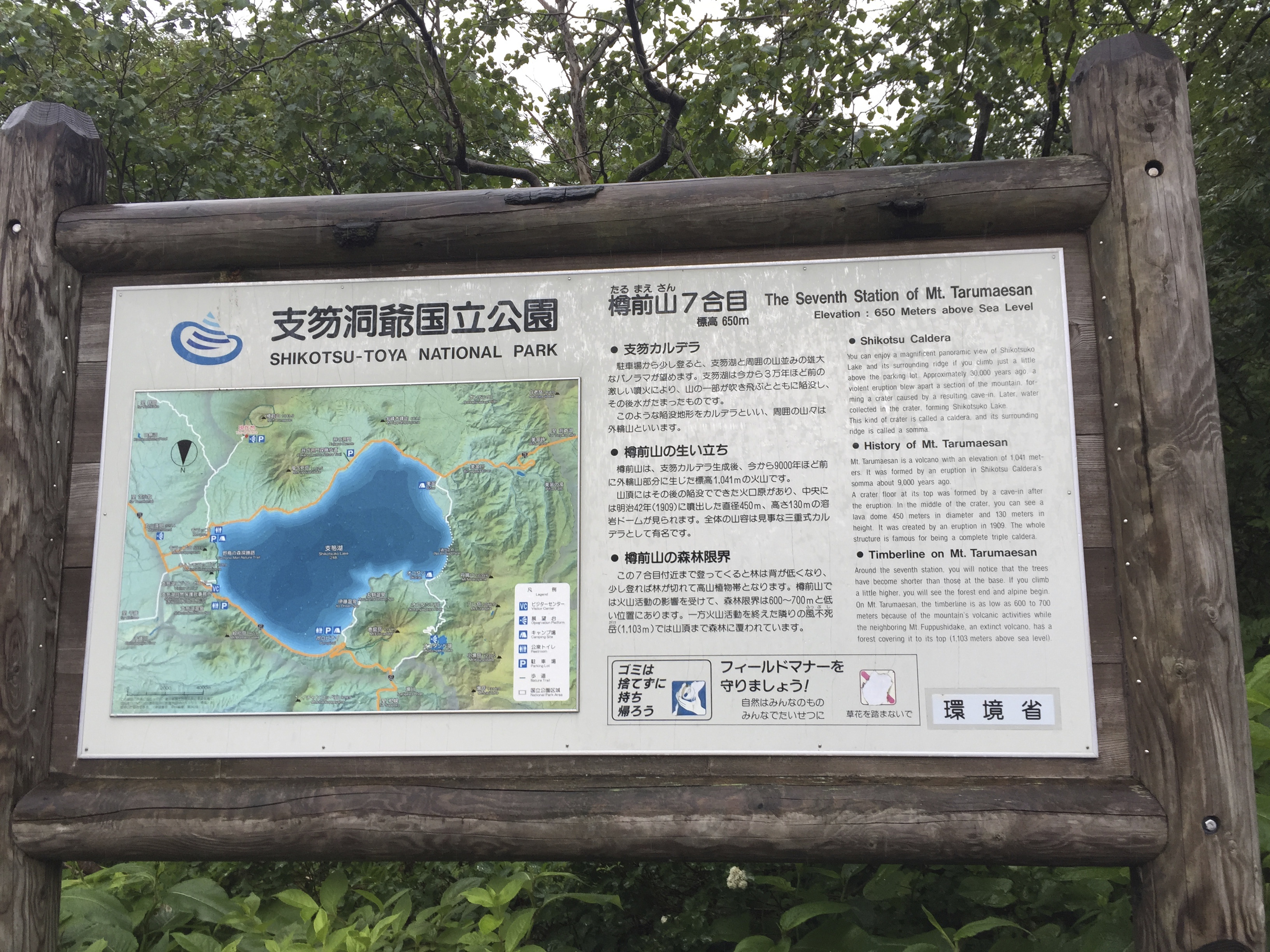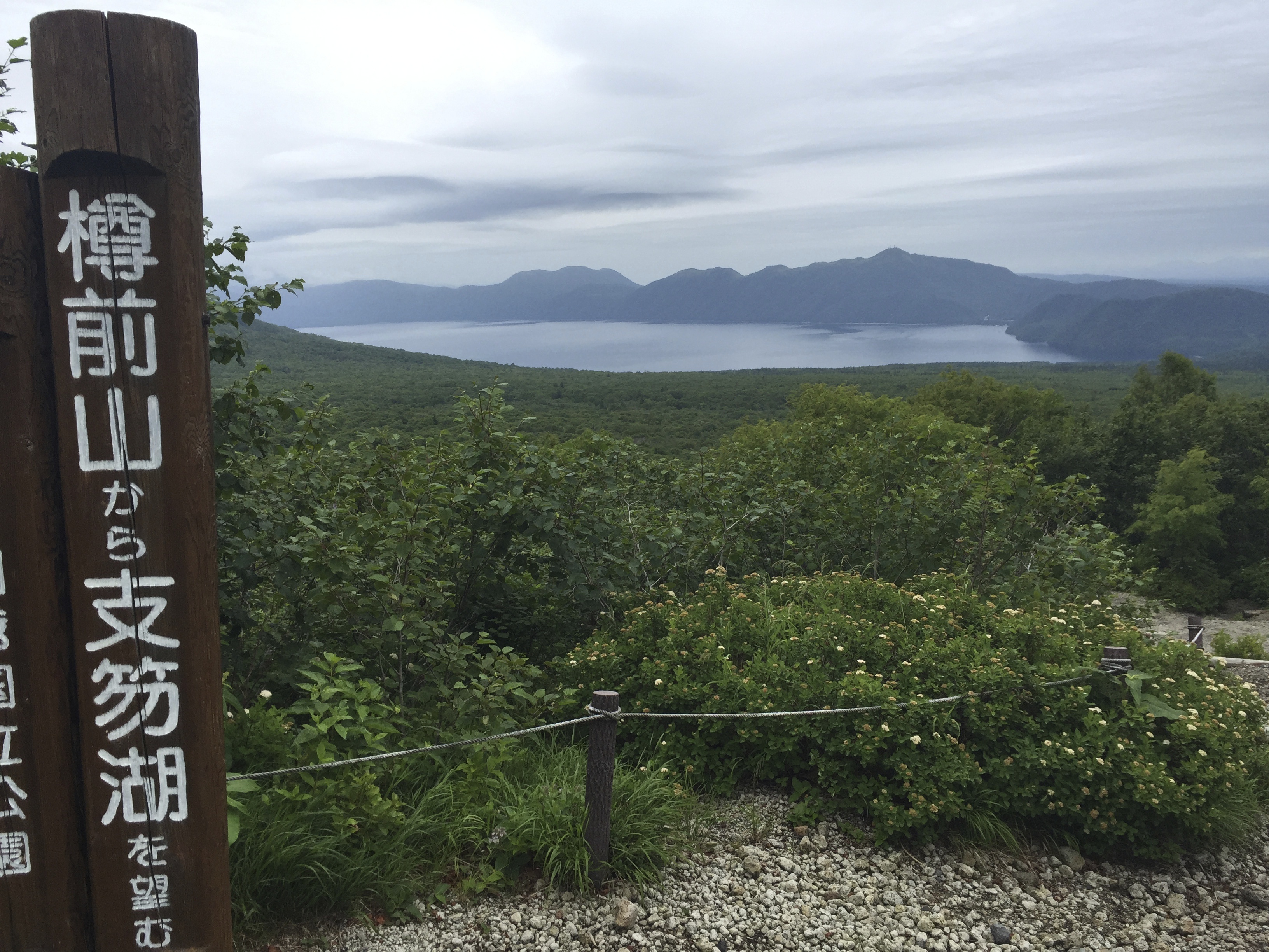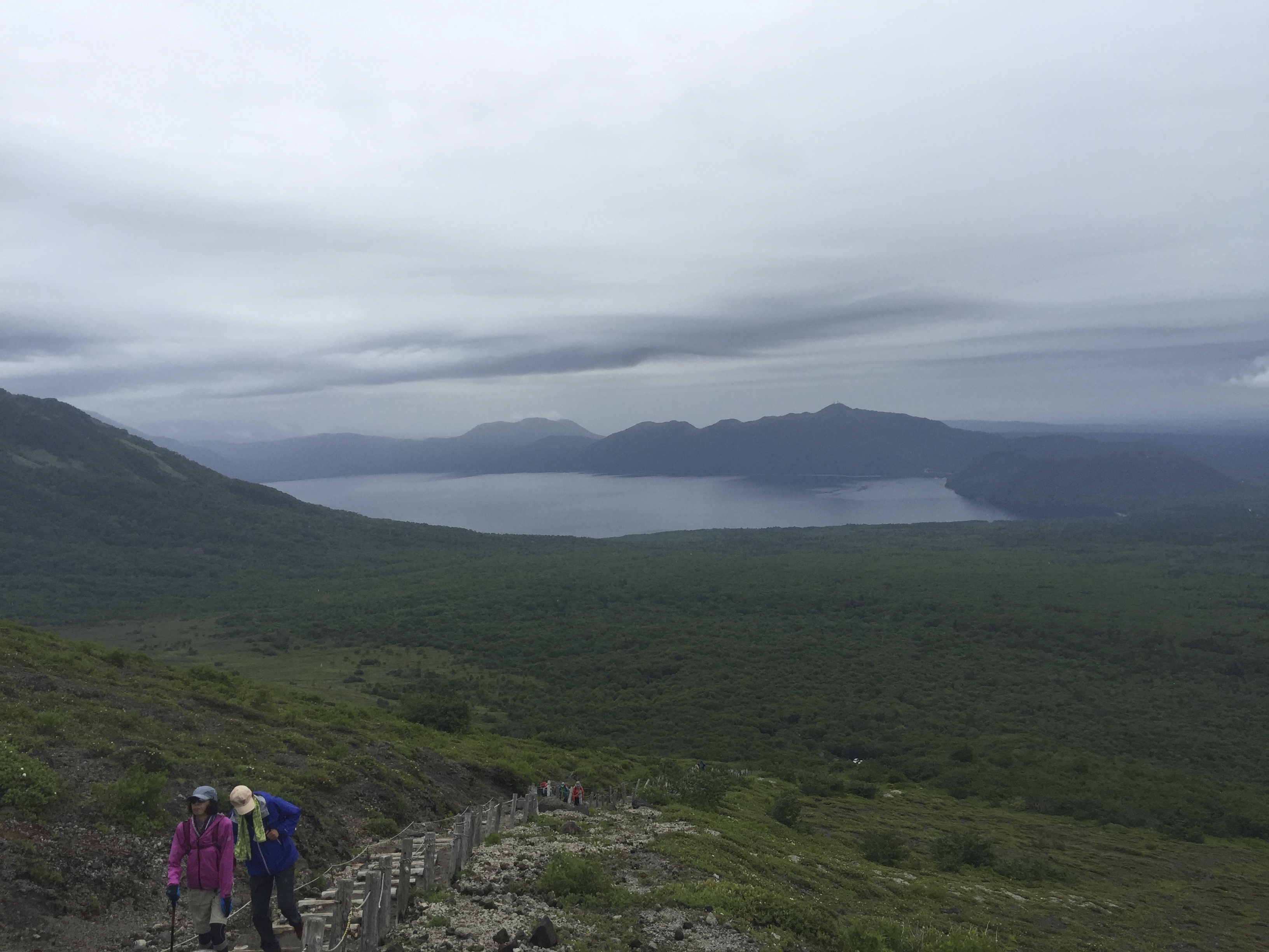 The rain was fairly relentless as we spent a few hours at Shikotsu-Toya National Park climbing Mount Tarumae and it didn’t take us too long at all to have some wonderful views looking back over the Lake Shikotsu with the mountains in the background.