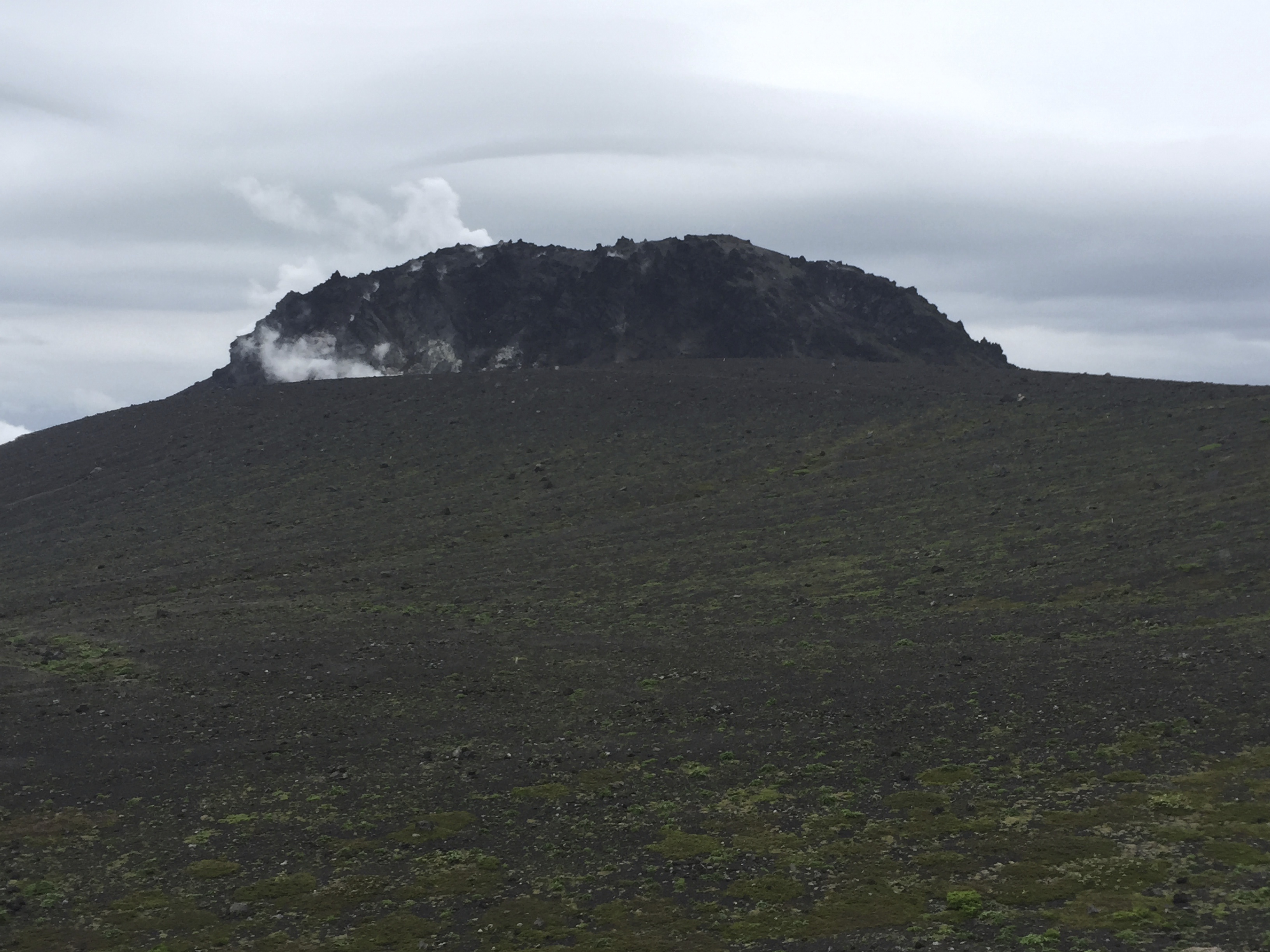 A steep hike took us up amidst some beautiful scenery reminiscent of the Scottish Highlands and the reward at the top of the crater rim was the lava dome of the Tarumae volcano standing out like a black version of Ayers Rock in Australia.