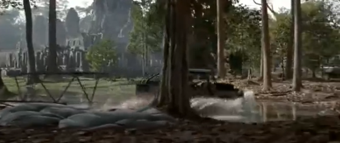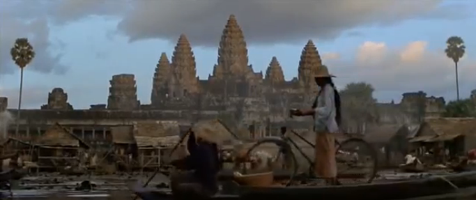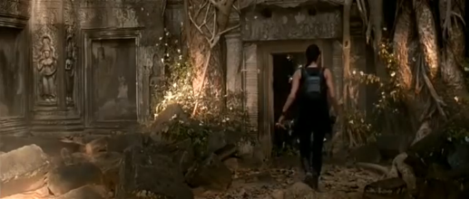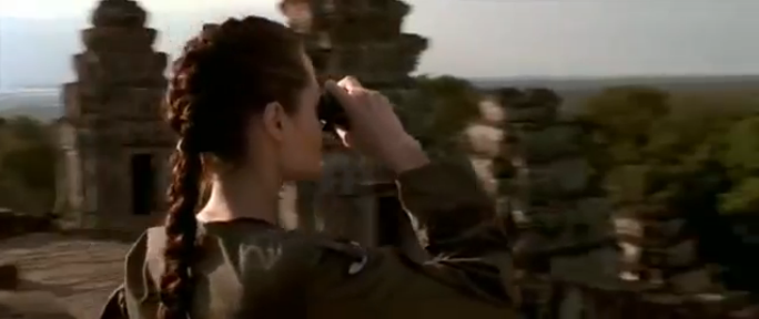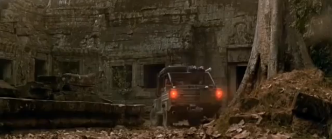 The action in Cambodia starts on 40 minutes as Lara Croft (Angelina Jolie) is on a mission to retrieve half of the triangular MacGuffin. Before Ta Prohm though, there are a couple of other temples playing cameo roles. Having called in a favour from the Special Forces, she is parachuted down (in her Land Rover no less!) and waves goodbye to the plane which helped her from the Central Sanctuary at Phnom Bakheng.