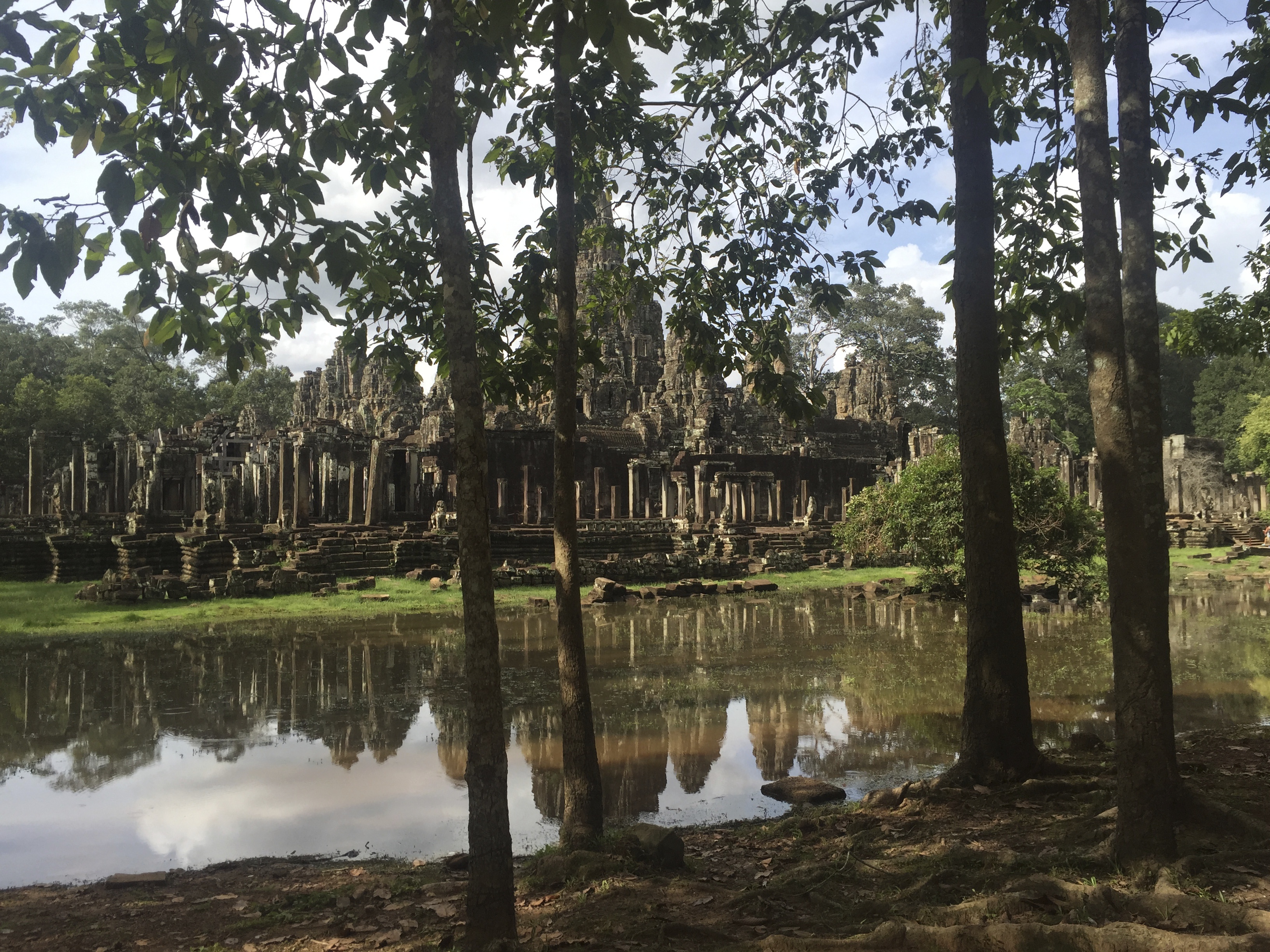 Whilst there are a couple of pools at Angkor Wat, there is no activity on them whatsoever. Croft comes ashore asking a monk in Khmer language where she can make an international call.