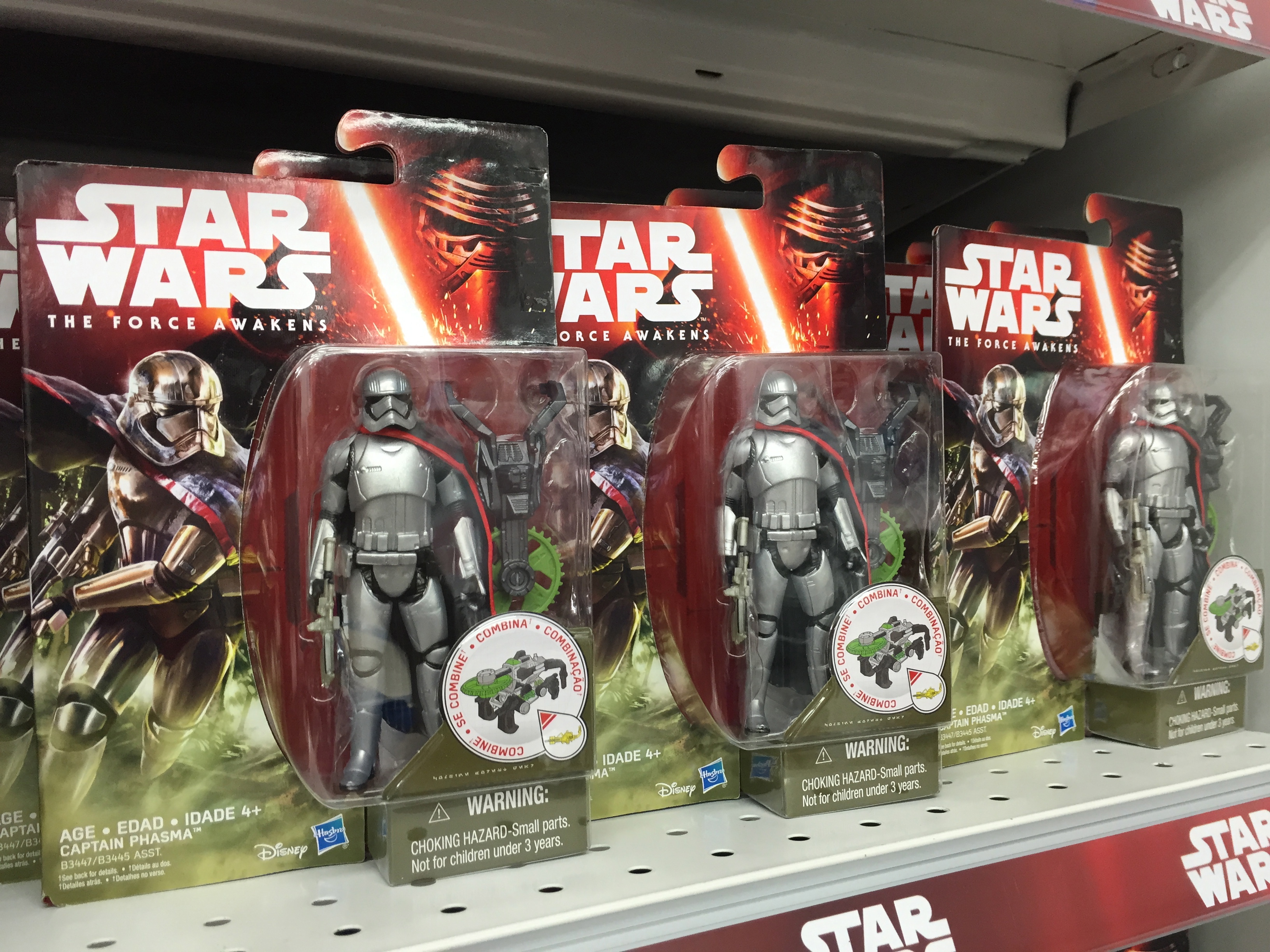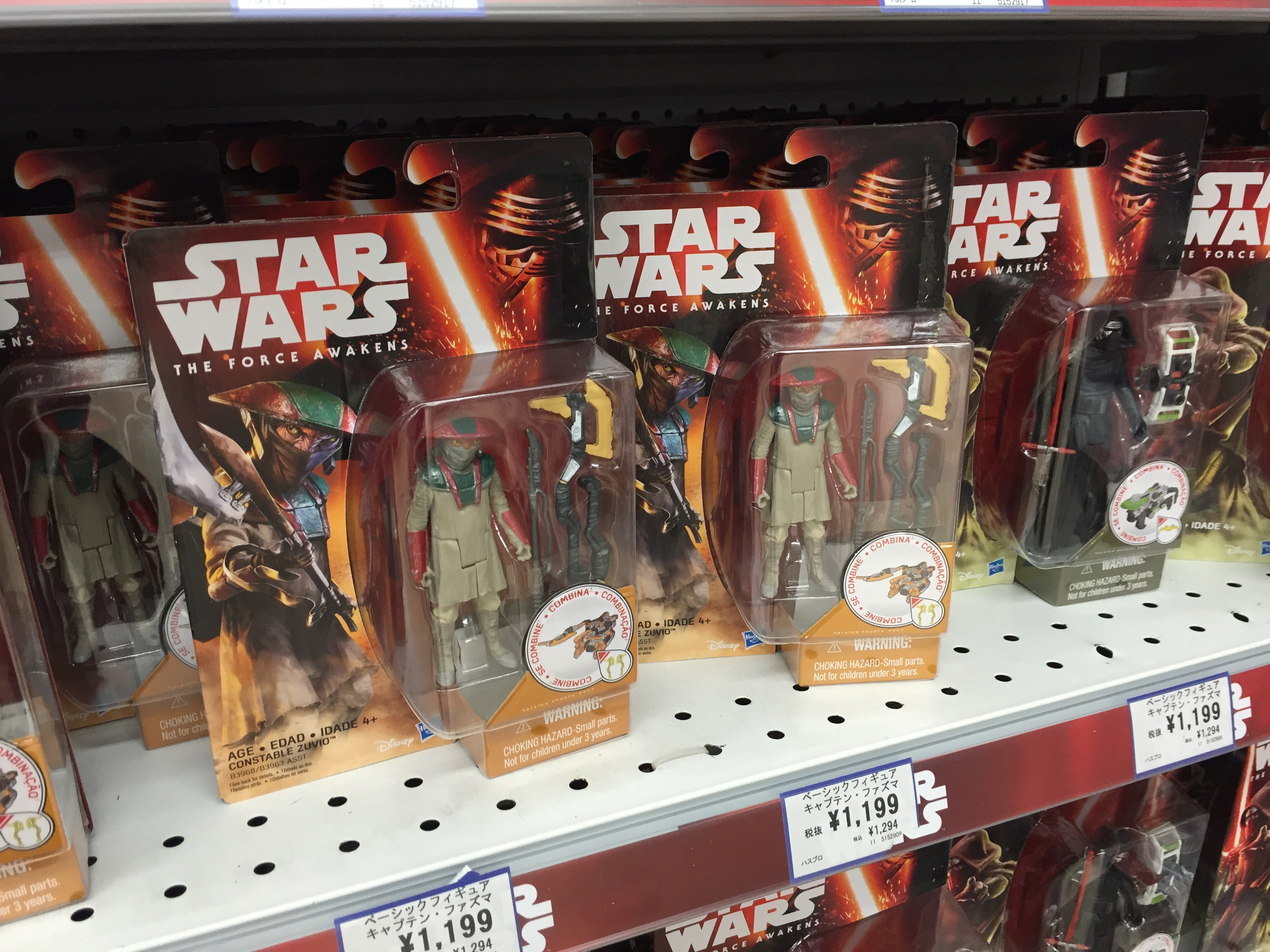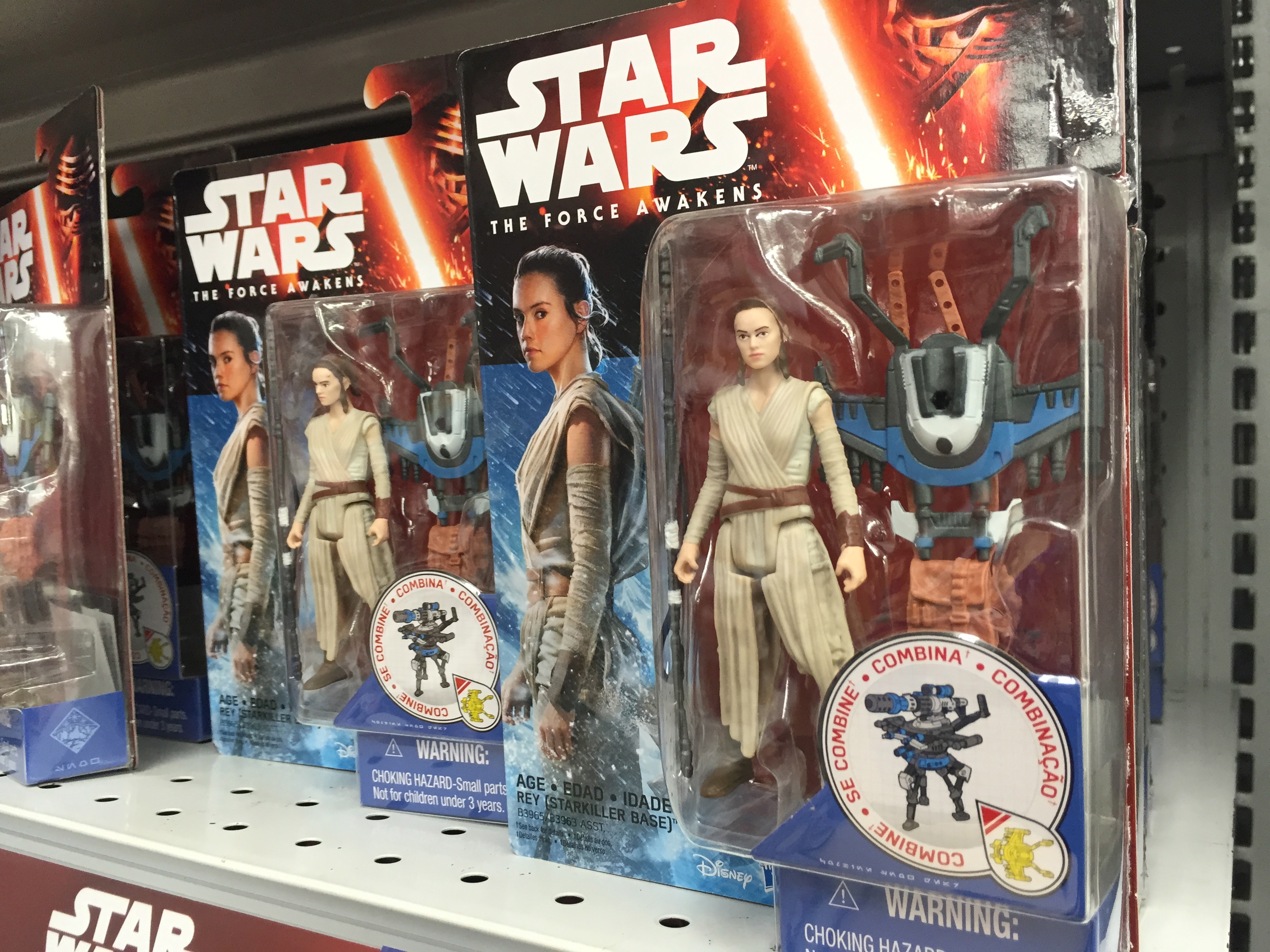 It took us a while to locate the Force Awakens goodies but just as we were pessimistically thinking there would be one or two Star Wars toys in the whole place we then saw a sizeable section devoted to all the new Star Wars things.