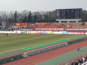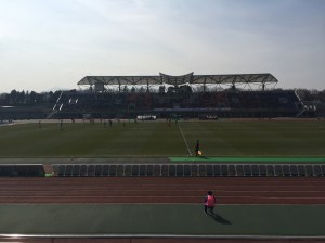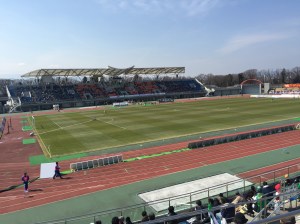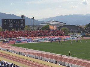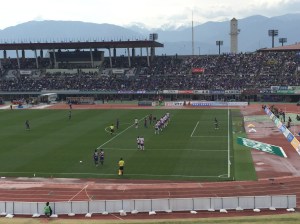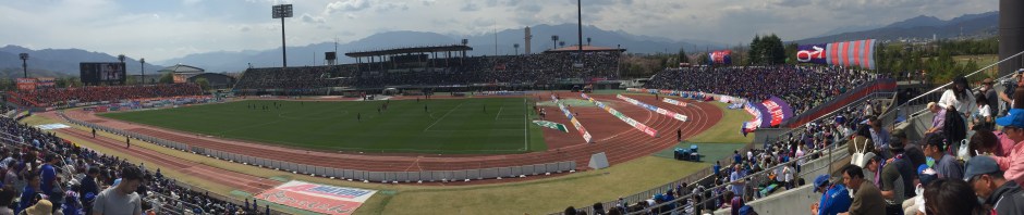 Ventforet Kofu have been in the top flight since the start of the 2013 season and their stadium holds 17,000 people having been built in 1985. We purchased our tickets (¥2700) to sit along the side of the pitch as we really didn’t want to go behind the goal where the views are usually terrible given the penchant for running tracks circling Japanese football pitches.