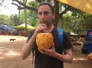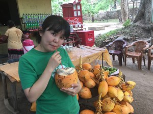 I’m not really a coconut fan but there’s always something a little exotic about drinking the water from one! Once the liquid had been consumed, the old lady selling them then chopped it up ready for my wife to scrape out the inside ready for eating.