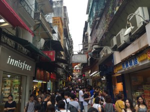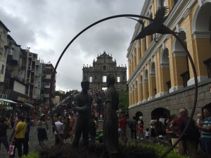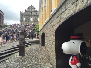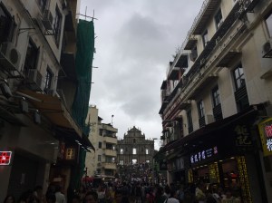 After walking through the square I saw the fine structure that is St. Dominic’s Church. Soon after that I was on a very busy shopping street leading up towards my main destination; the Ruins of the Church of St. Paul. All the shops lining the street were offering samples of pork jerky and almond cookies which was very much welcomed by me.
