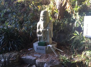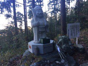 After about 15 minutes the woods made way for clear blue skies, beautiful green tea fields, mountains in the distance (including Mount Fuji) and a statue of someone or another!