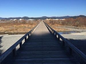 As bridges go, this is a world apart from Sydney Harbour Bridge, Brooklyn Bridge or Tower Bridge but nevertheless it’s still impressive in a different kind of way. The views are lovely and Mount Fuji was clearly visible in the distance of this bridge which (as the title of this piece reveals!) currently holds the Guinness World Record for the longest wooden walking bridge in the world. It is 897.4 meters long and was completed in January 1879 to connect Shimada and the Makinohara area over the Oigawa River. Horai-bashi Bridge (to give it its proper name!) was rebuilt every time it was damaged by rising water until arriving at its current appearance.