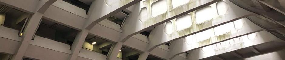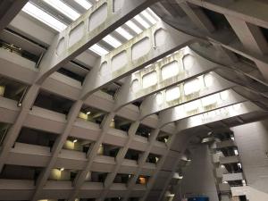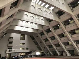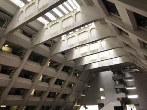 Wanting to get a view of the whole structure’s exterior I sought out a vantage point in a nearby building so climbed up to the 12th floor of the structure across from it just to get the first photo seen below.