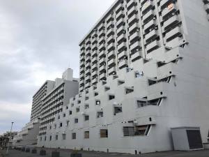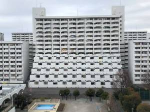 This building (number 3) was part of the Kawaramachi High Rise Housing Project and was completed in 1972 with it’s design intended as an alternative to the usual alternative block. As you can see the lower half of the building is splayed resulting in a public space underneath which has seemingly never really been utilised fully and has ended up just being an area where the residents park their bicycles or the kids play ball games.