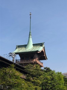 Back at Kyoto station I hopped on a bus that just happened to be going to Arashikawa but my main aim was not the bamboo forest (which I actually did inadvertently see) as I wanted to visit the 1,200 carved stone figures at Otagi Nenbutsu-ji Temple. Before taking the bus, I noticed the impressive tower (below) on top of the Kyoto Tower Hotel. Funny that I’ve never noticed it before on my various other trips over the years! I guess I’ve always had my mind on other things like looking for the right bus or my head has been buried in a train map as I headed for the Subway!