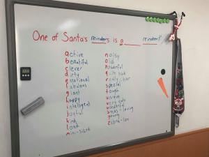 The only other new idea brought to the table for Christmas lessons was made up on the spot and called “One of Santa’s reindeers is a _____ reindeer” where the gap is filled with an adjective or whatever for each letter of the alphabet whilst the students throw a ball to each other to nominate the next person.