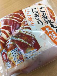Onigiri are balls of rice usually filled with salty or sour ingredients like salmon, tuna, pickled fruit etc but Lawson (them again!) brought out one with takoyaki (a wheat flour-based batter ball filled with diced octopus) in it and I have to say that it (below) was actually much better than I thought it would be.