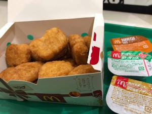 In other chicken news, McDonalds got ready for the increased demand in chicken at this time of the year by offering 15 pieces of Chicken McNuggets (below) for just 390 yen with three sauces. To make it more festive, two of the sauces were called Merry Christmas steak sauce (soy sauce based with garlic, onion and cracked black pepper) and Happy New Year lobster mayo sauce (lobster powder and creamy mayonnaise). Both were nice but no replacement for barbecue sauce!