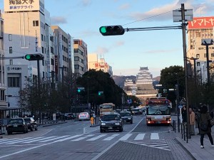 Akashi castle (below) could be seen just before four o’clock but Japan’s best castle was just around the corner. Not literally though.