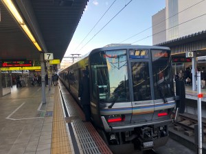 An important transfer lay ahead at Maibara as that was to be the longest leg of the trek and it was also a tight one as there were only three minutes to get up and down the required stairs whilst fighting my way through the crowds of passengers. This two and a half hour afternoon train to Himeji passed through big hitters like Kyoto and Osaka. As the train pulled out of the latter I could see the architectural wonder (below) that is the Umeda Sky Building.