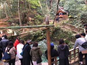 One of the best features of this complex was not all the phallic statues but the Kagami-no-ike (mirror pond) lying a short walk beyond the main shrine. I’m not sure of the full details but it seems like you buy a fortune paper for ¥100 and balance a coin on it and see how long it floats before sinking. The length of time the paper takes to sink is said to signify how soon you will meet your soul mate.